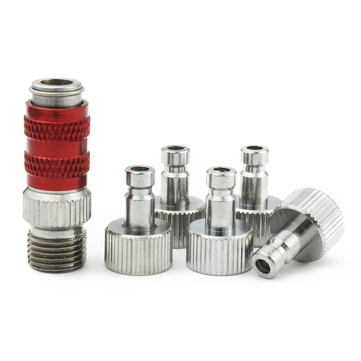 EXERT エアーブラシ クイックジョイント ワンタッチ 1/8 クイックチェンジ プラグ5個付き レッド