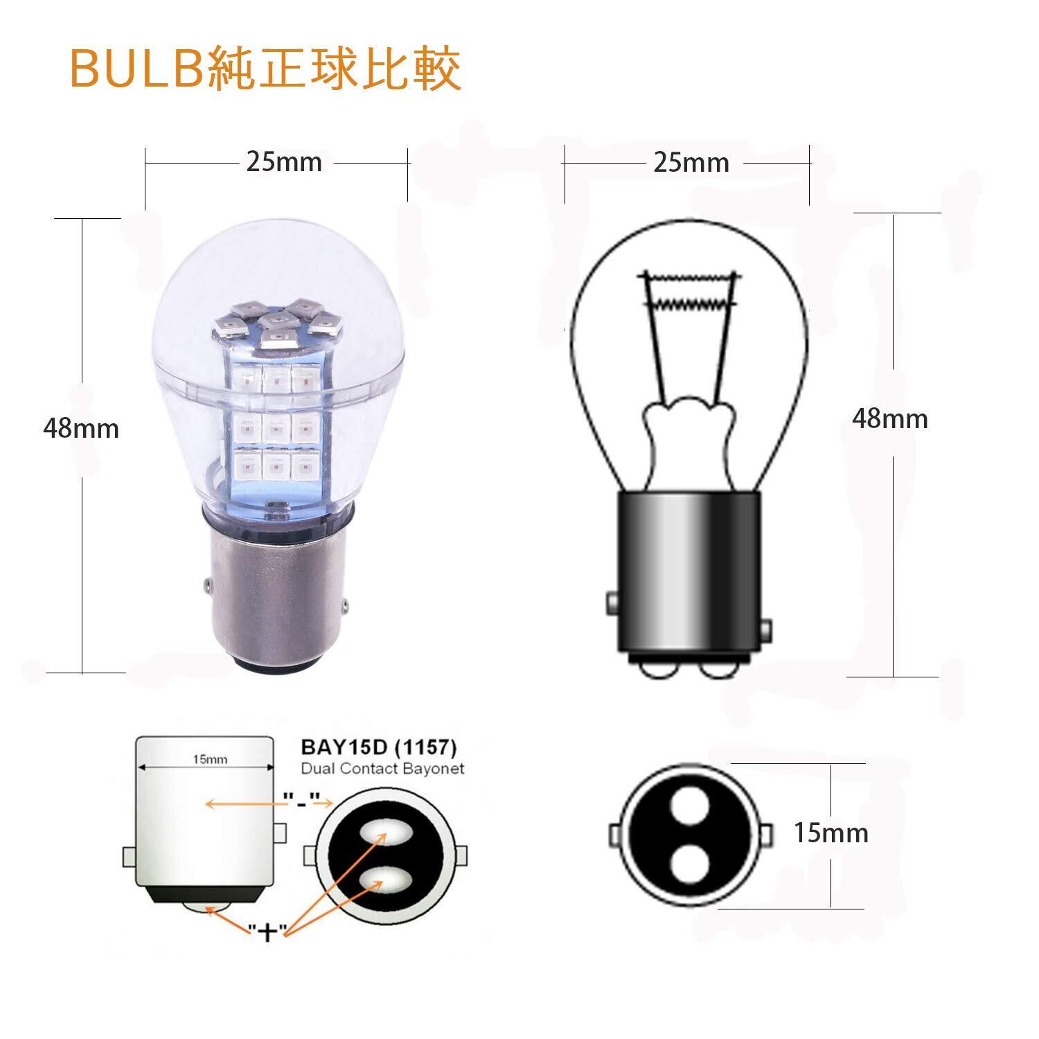 HooMoo S25 LED ダブル 1157 BAY15D P21/5W ブレーキランプ ストップランプ レッド 赤 純正球サイズ 段違いピン180° 汎用 変換 バルブ ブレーキ ライト ダブル球 高輝度 12V/24V 車用 2835SMD 33連 拡散レンズ付き 2個セット
