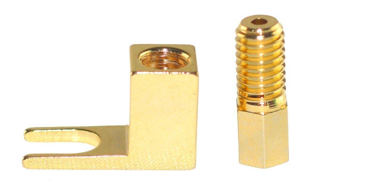 ・無ハンダ/ネジ方式Yラグ端子 8個1組 ・全長2.2cm ・金メッキ処理 ・質量:10g(1個当たり) バナナプラグをスペードプラグ(Yラグ) L型に変換!!