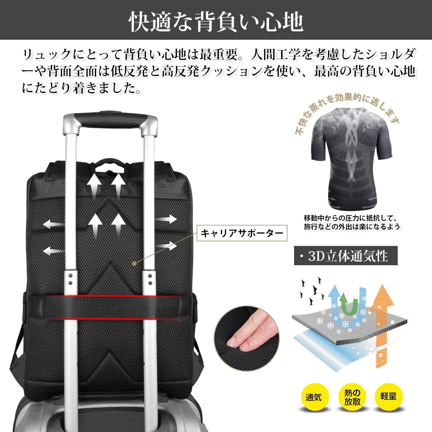 【使い勝手抜群】ポケットが小さめ大きめなど多数あるので、仕分けやすく取り出しやすいです。15.6インチPCやタブレットはPC専門ポケットへ、手帳・ペン・財布などの小物はサブポケットへ、書類・A4ファイル・衣類などはメインポケットへ、折り畳み式傘・水筒はサイドポケットに入れます。日常必要なアイテムをひとまとめにして楽々に持ち運べます。メインポケットは約75度大きく開くので、スムーズに出し入れ、たくさん入るスタイリッシュであるバックパックです。