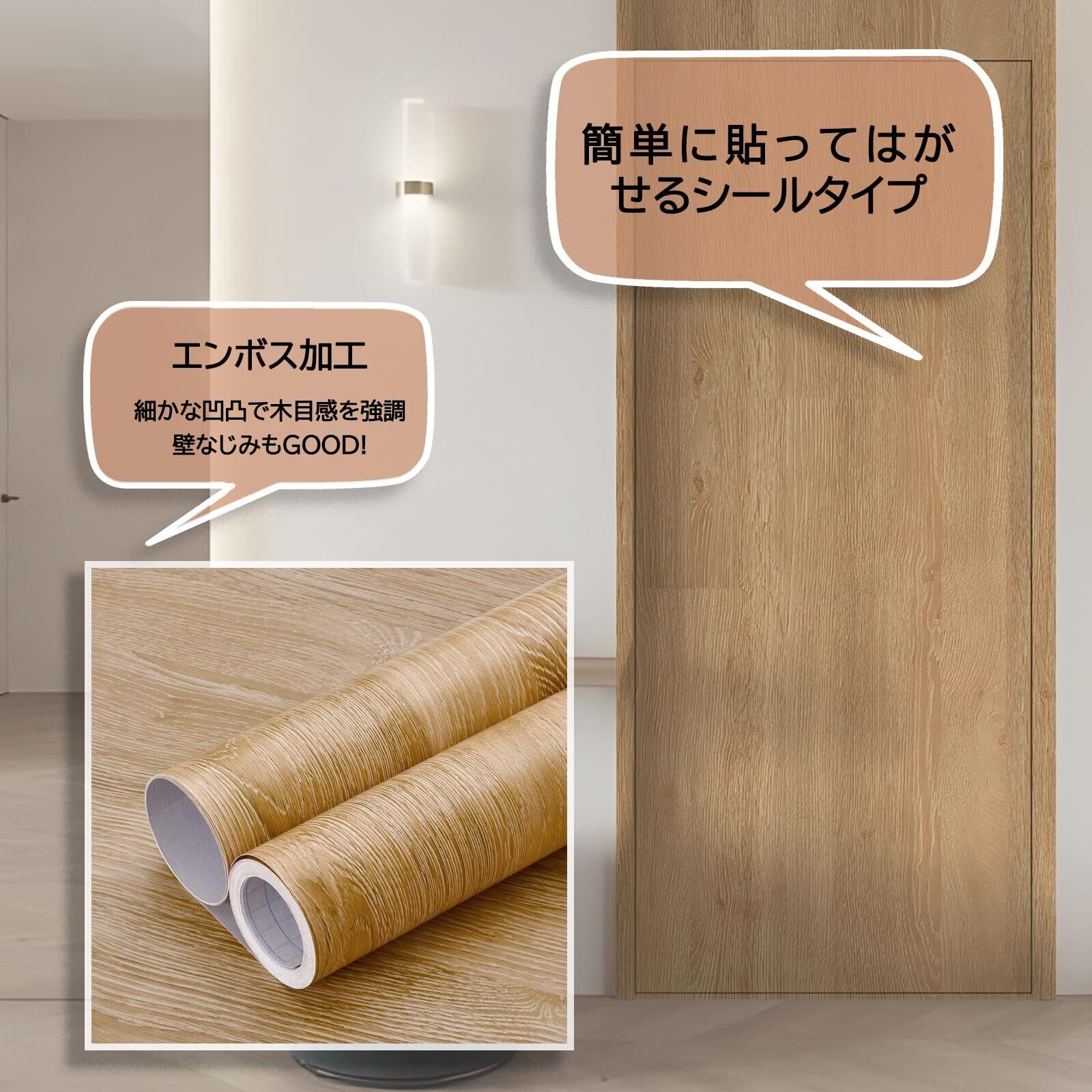 - 【ナチュラルな木目調】本物の木のような風合いを実現したエンボス加工で、インテリアをグッと引き立てます!自宅のテーブルやドアに貼るだけで、まるで新しいアイテムのように transformation できます。