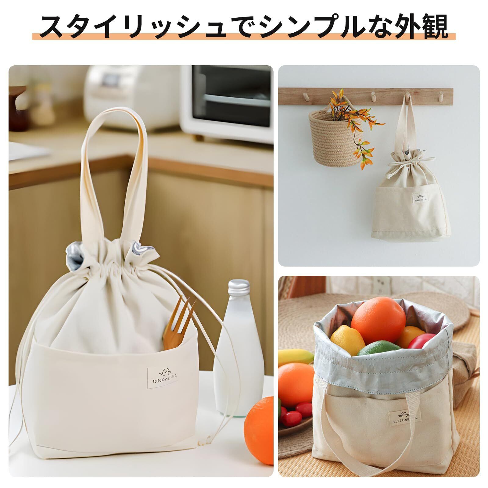 ランチバッグ 保冷バッグ お弁当 巾着バッグ 大容量 保冷 保温 ランチバッグ 厚手麻綿素材 断熱アルミ箔ライニング 耐久性 防水 アウトドアキャンプピクニックバッグなどに 男女兼用 お弁当袋 (キャンバスホワイト)