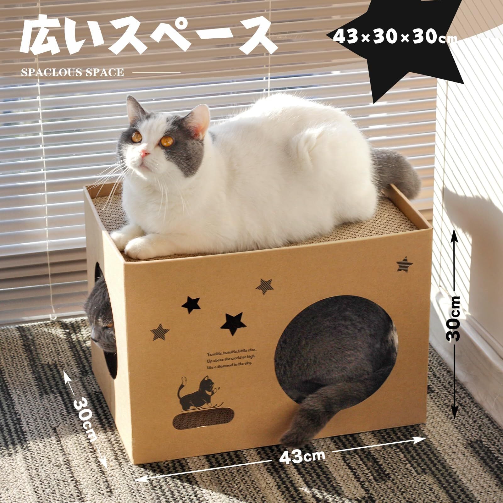 - 【通気性抜群・快適な居住空間】ダンボールハウスは通気性に優れており、愛猫が長時間くつろげる快適なスペースを提供します。ストレスを軽減し、リラックスできる環境を実現します。