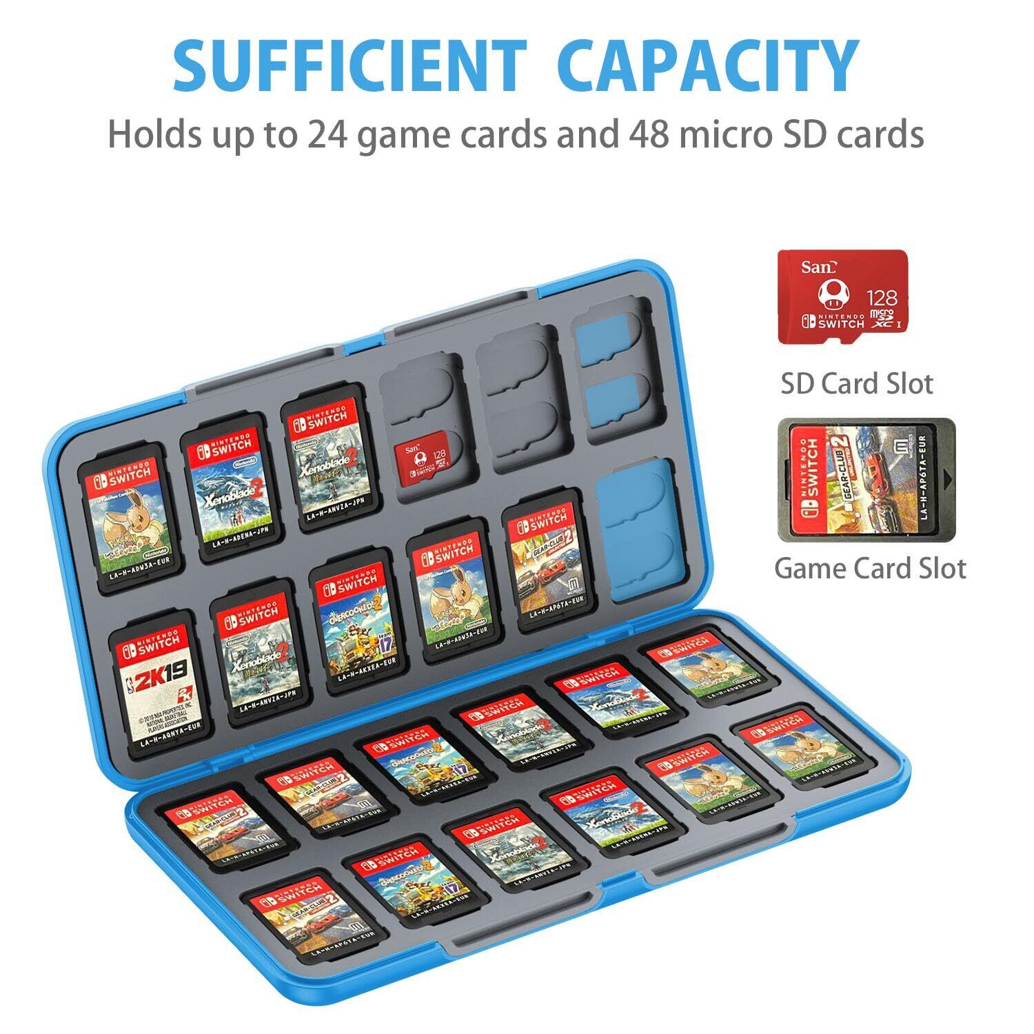 【24+24大容量 switch ソフトケース】24個のスイッチゲームカセットスロット+24個のSDカードスロットの大容量設計を採用し、プレーヤーに保管の利便性を提供し、ソフトカードの失うや損傷を回避できます。