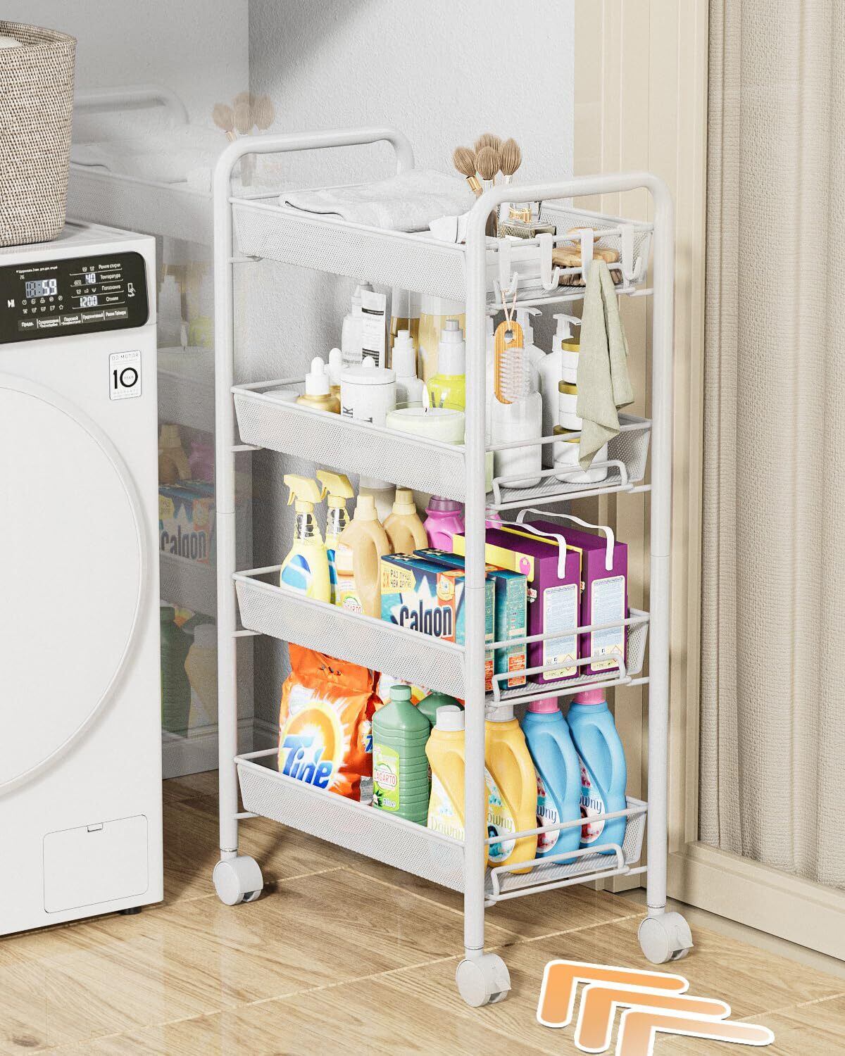 【新春セール】EKNITEY メタルラック キッチンワゴン メタル収納カート メッシュ キッチン カート 防錆 小物収納 サイドワゴン 4段 幅26.5×奥行45.5×高さ84.5cm ホワイト | allstore3