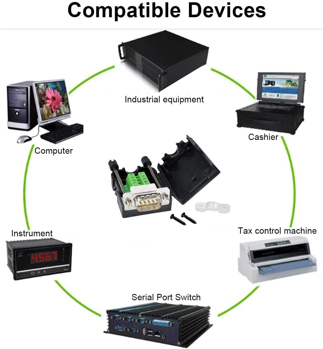 このD-SUB 9ピンコネクタは、あらゆる種類のシリアルデバイスを接続できます。コンピュータおよび税務管理機、デジタルカメラ、PLC、PDA、モデム、セットトップボックス、バーコードマシン、産業用計装およびその他の通信機器などにご使用できます。
