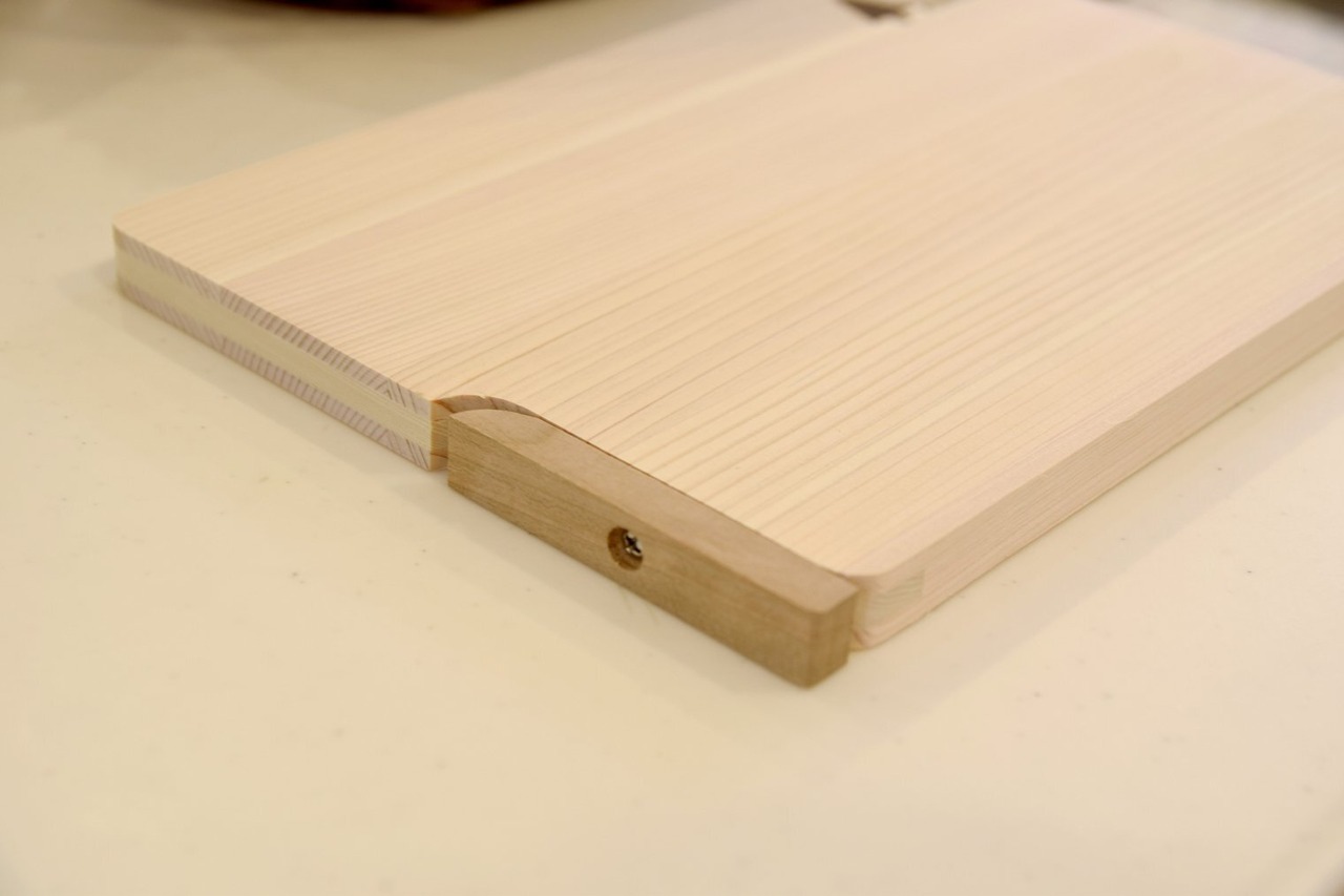 材質:東濃ひのき(まな板)、桜材(スタンド)、米ヒバ材(ソリ止部)、ステンレス(ビス)