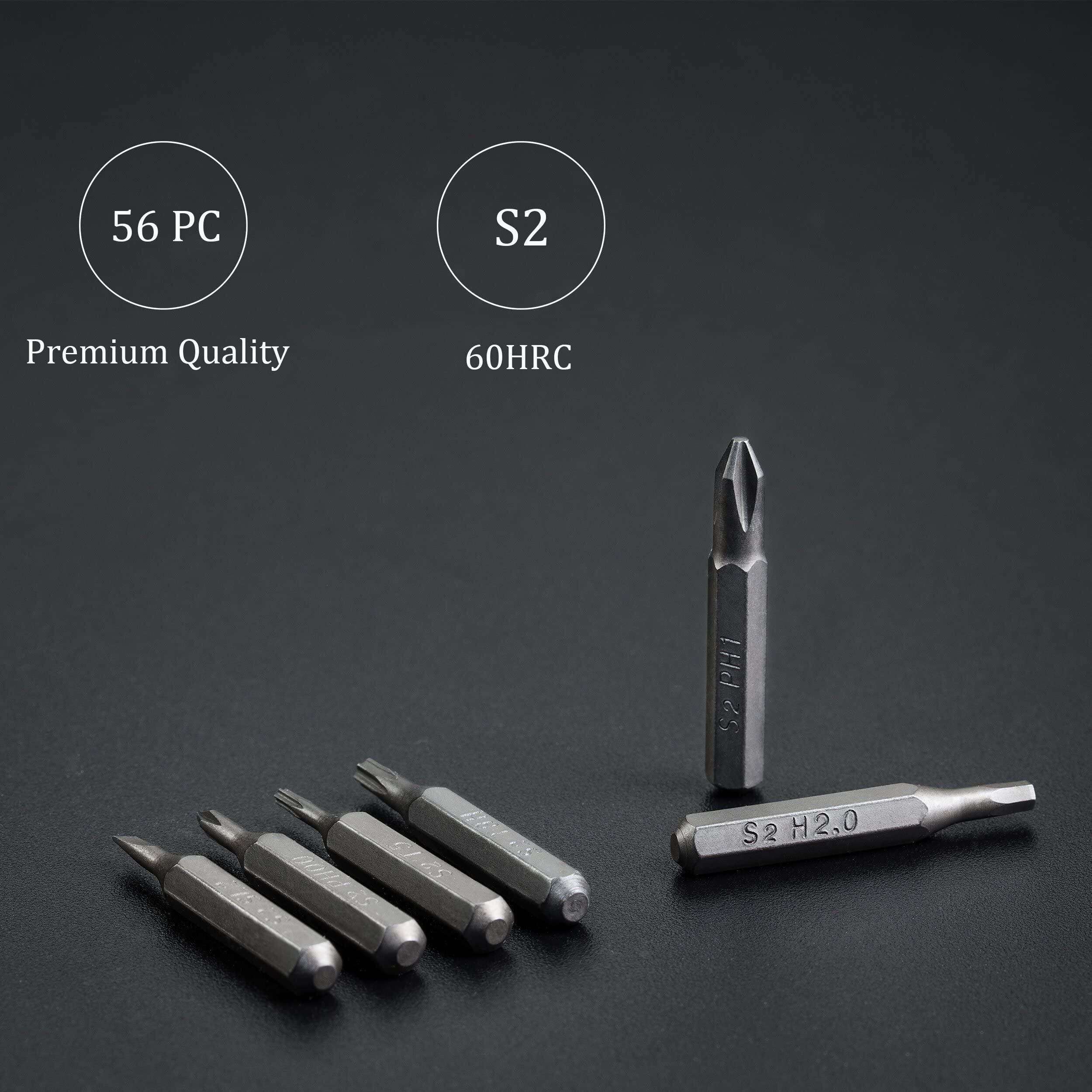 【豊富な56種類のビット】豊富な56種類のビットが入っているドライバーセットです。グリップと一緒に専用のケースへ収納できます。16.5x6.6cm、重量:325gのコンパクトサイズで、管理しやすいだけでなく気軽に持ち運べます!
