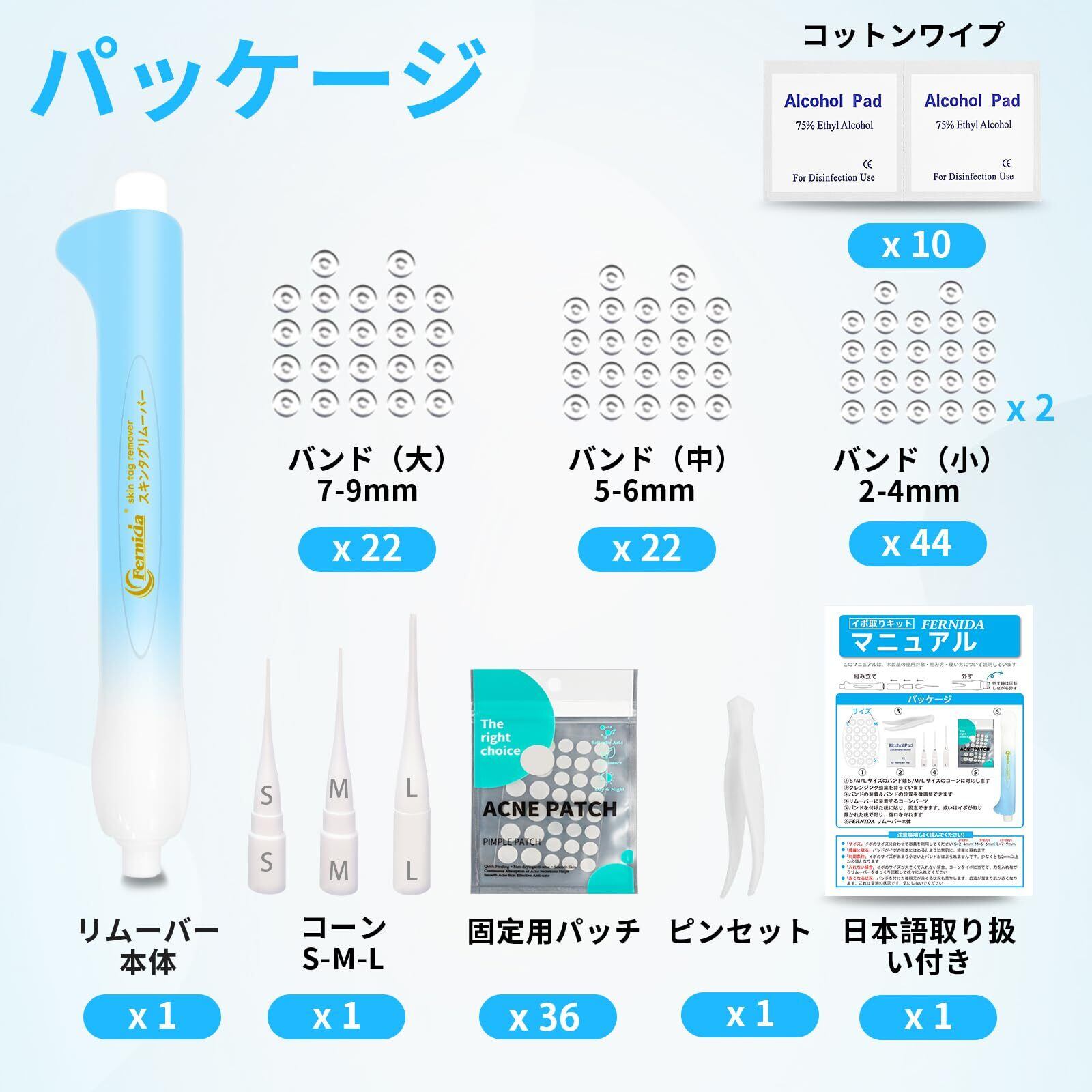 FERNIDA イボ取り スキンタグリムーバー 2mm~9mm イボ除去ツール 自宅 片手簡単操作 すべての肌タイプ対応 エコー素材採用 88回分バンド付き 3in1キット 顔 首 手 足 脇 胴体 日本語取り扱い付き
