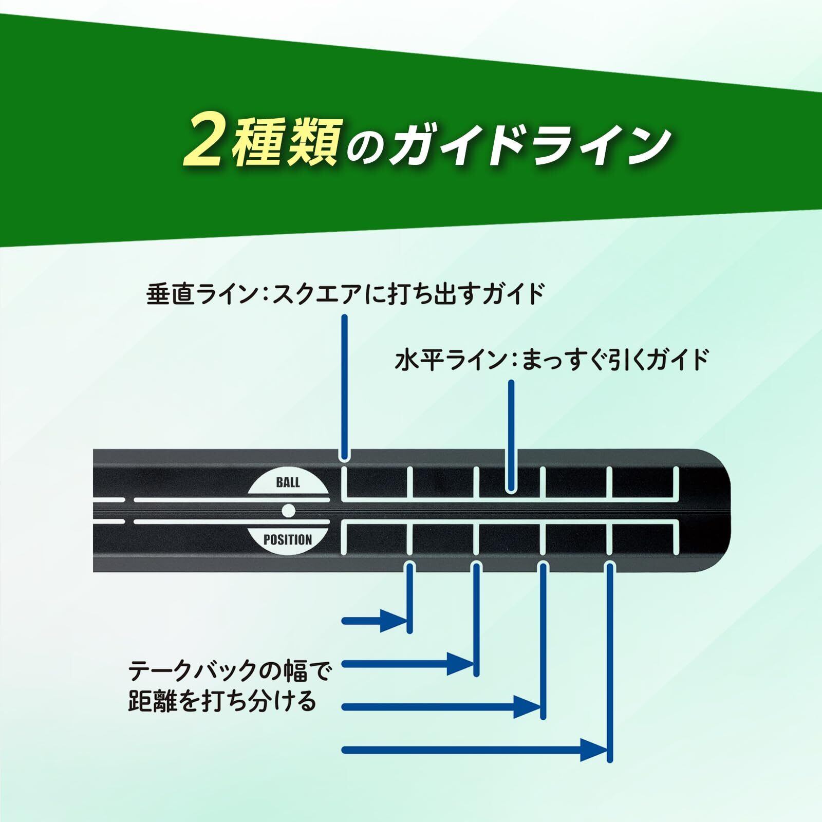 長さ1mのパットチェックでパターの癖が分かり、まっすぐ打ち出すことを練習できます。