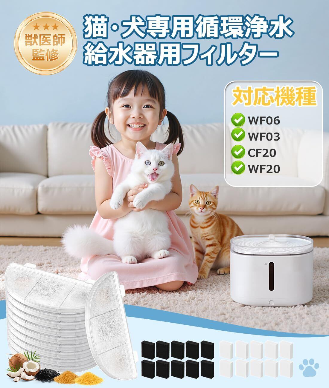 【特価セール】【獣医師監修】 ペット 猫 水フィルター 給水器フィルター WF06 WF03 CF20 WF20 交換水フィルター 猫 犬 兼用 自動給水器 水飲み器 フィルターユニット 5層ろ過構造&ぬめり軽減タイプ 枠付き 10セット入り