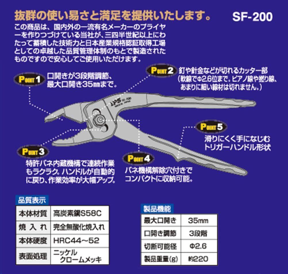 IPS(五十嵐プライヤー) TOJIプラトリガー ローレット 200mm SF-200 日本製 燕三条