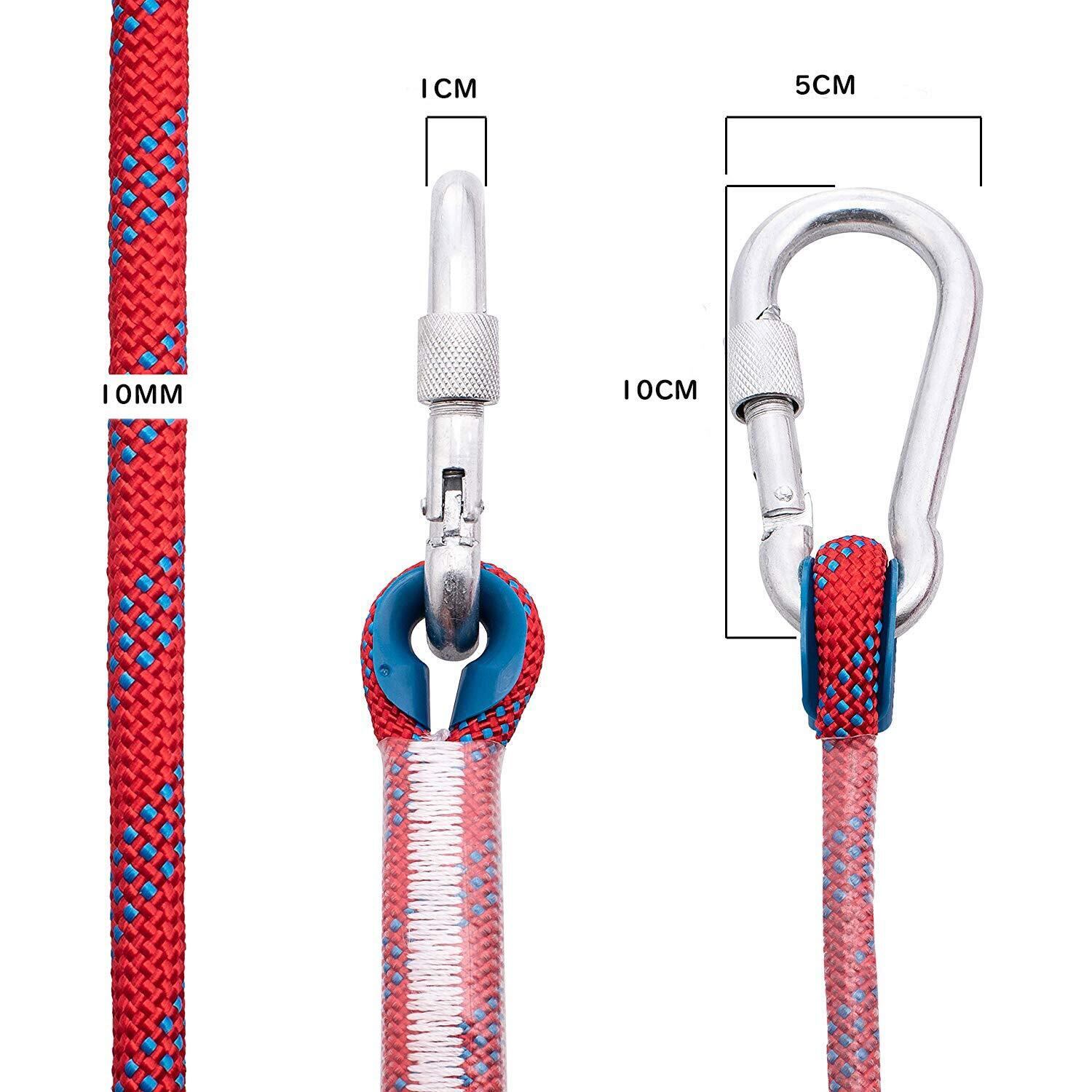 focous 多目的ロープ 10mm 10M/20M/30M 引張力2100kg 48本ナイロン芯 アウトドア キャンプ 樹木伐採 窓清掃 カラビナ2個付き (30M)
