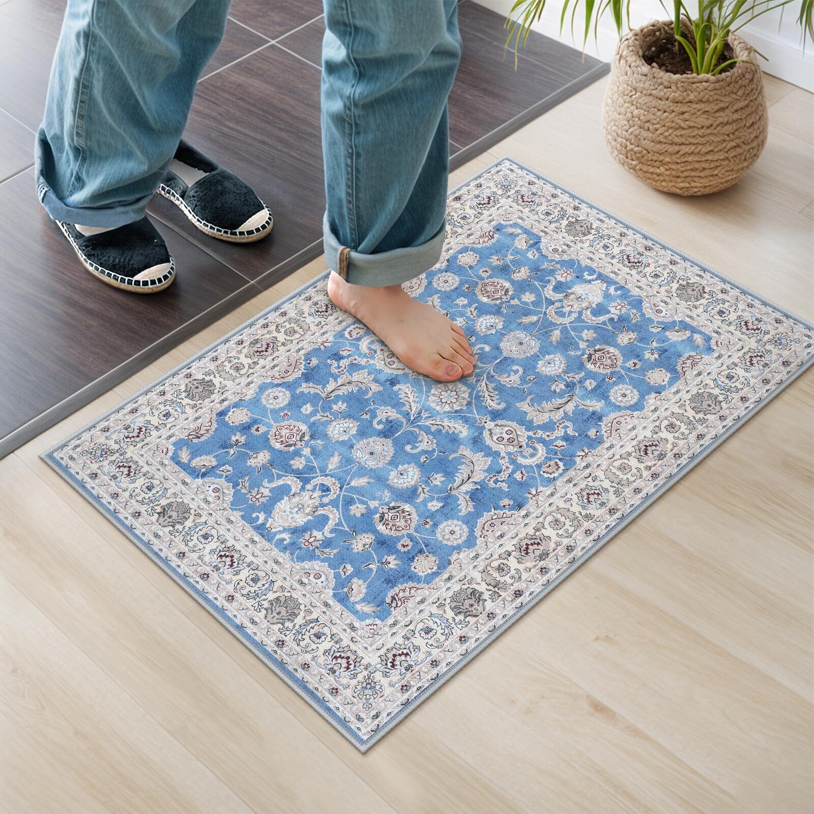 HAOCOO 玄関マット ペルシャ絨毯風 室内 50х80cm 小さい ラグ おしゃれ 洗える 長方形 耐磨耗性 滑り止め 防音 ラグマット 屋外 泥落とし シェニール オールシーズン適用 抗菌防臭 軽量 ライトブルー