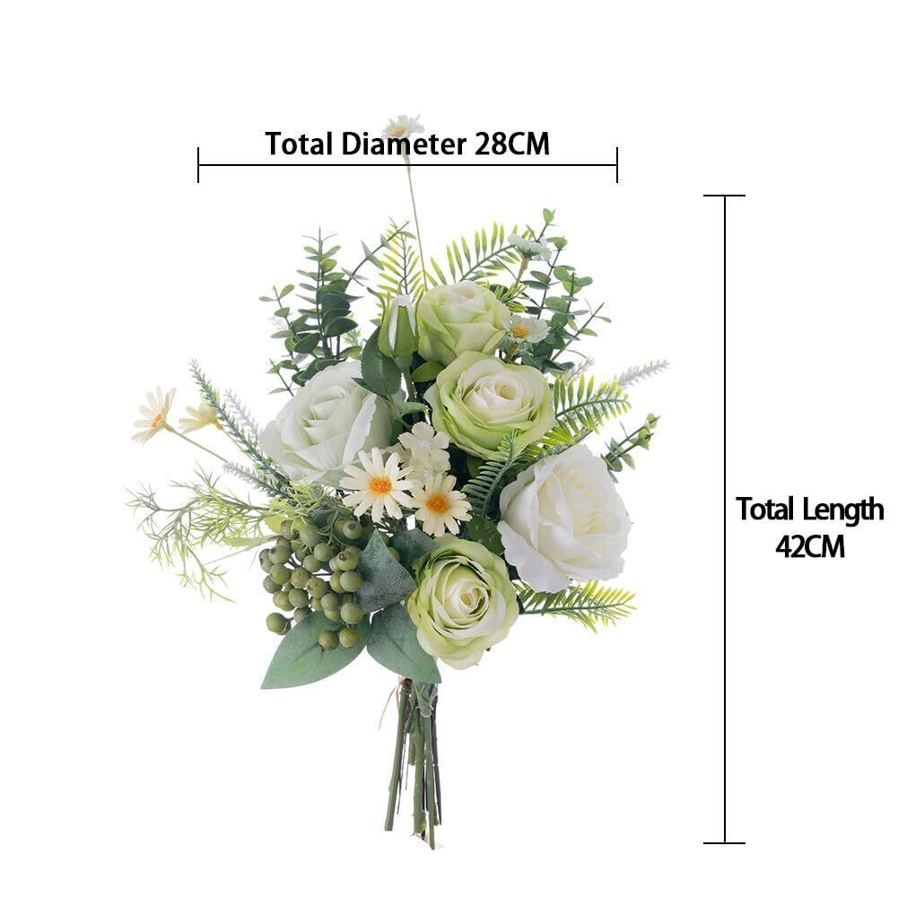 WillingYou 造花 ブーケ ウェディングブーケ 花束 バラ 実 デイジー キレイ おしゃれ 枯れない エターナル ブライダルブーケ 結婚式 インテリア 壁掛け 前撮り 花飾り お月見 小物 ヘッド 撮影 玄関 事務所 春 夏 白 グリーン 1束 高さ約42㎝