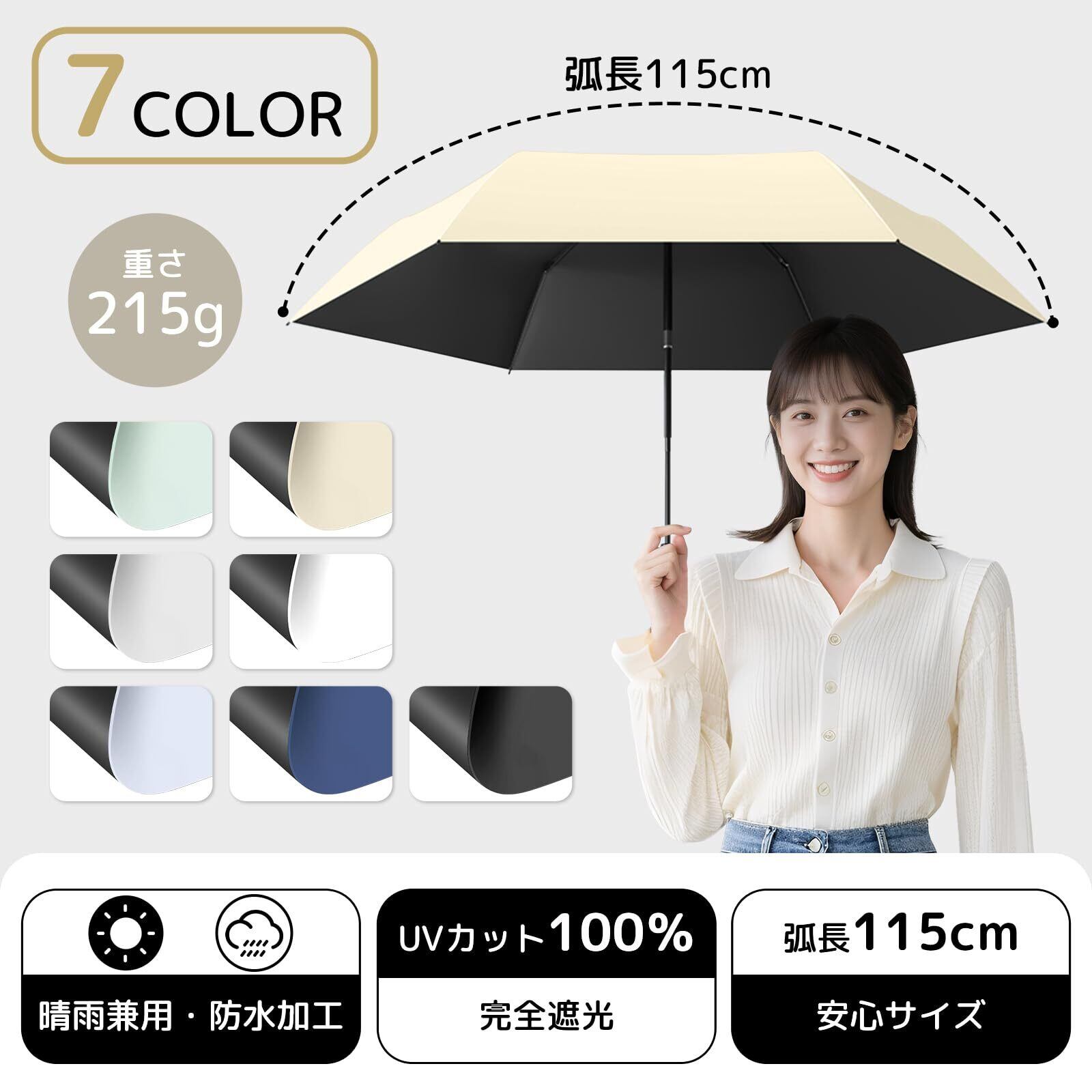 【コンパクトで軽やか、大きめサイズ】広げると直径100cmのゆったりサイズで、しっかり日差しや雨から守ってくれます。収納時は厚さわずか4cmとスリムでバッグにすっと収まるので、お出かけ時もかさばらず便利です。重さは200gととても軽く、長時間の持ち歩きも疲れにくい設計です。毎日の通勤・通学やお買い物、旅行など、女性にも嬉しい使いやすさです。