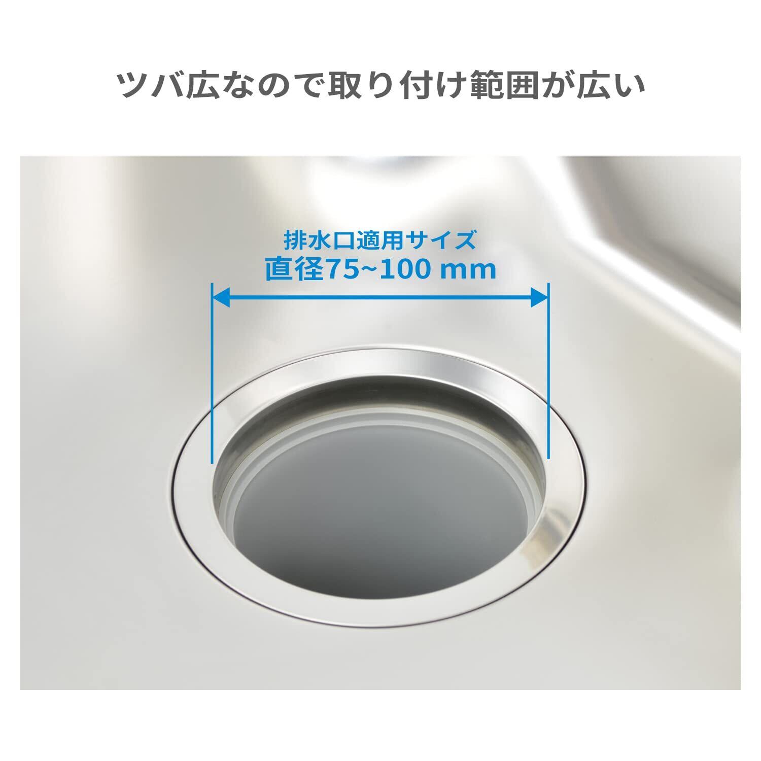 【80mmタイプ】はいすいこうゴミ受けはツバヒロなので取り付け範囲が広いです。排水溝適用サイズ:7.5-10cm。シンクの色と合いやすく、キッチンに統一感が生まれます。