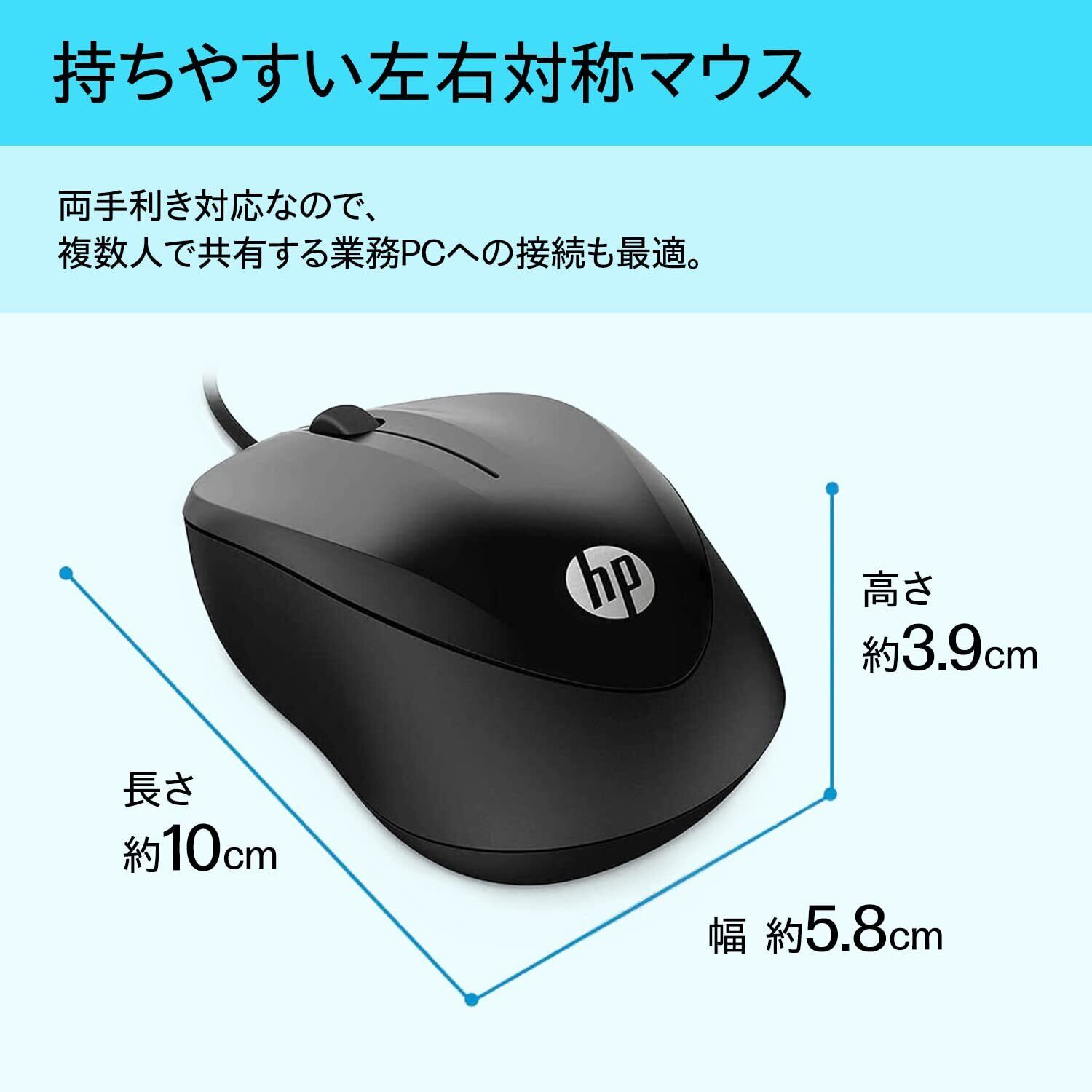 【2022最新】HP マウス 有線 HP 1000 USB 3ボタン 1200dpi 1.5mケーブル Mac Windows PC Macbook対応 型番:4QM14AA#UUF【国内正規品】