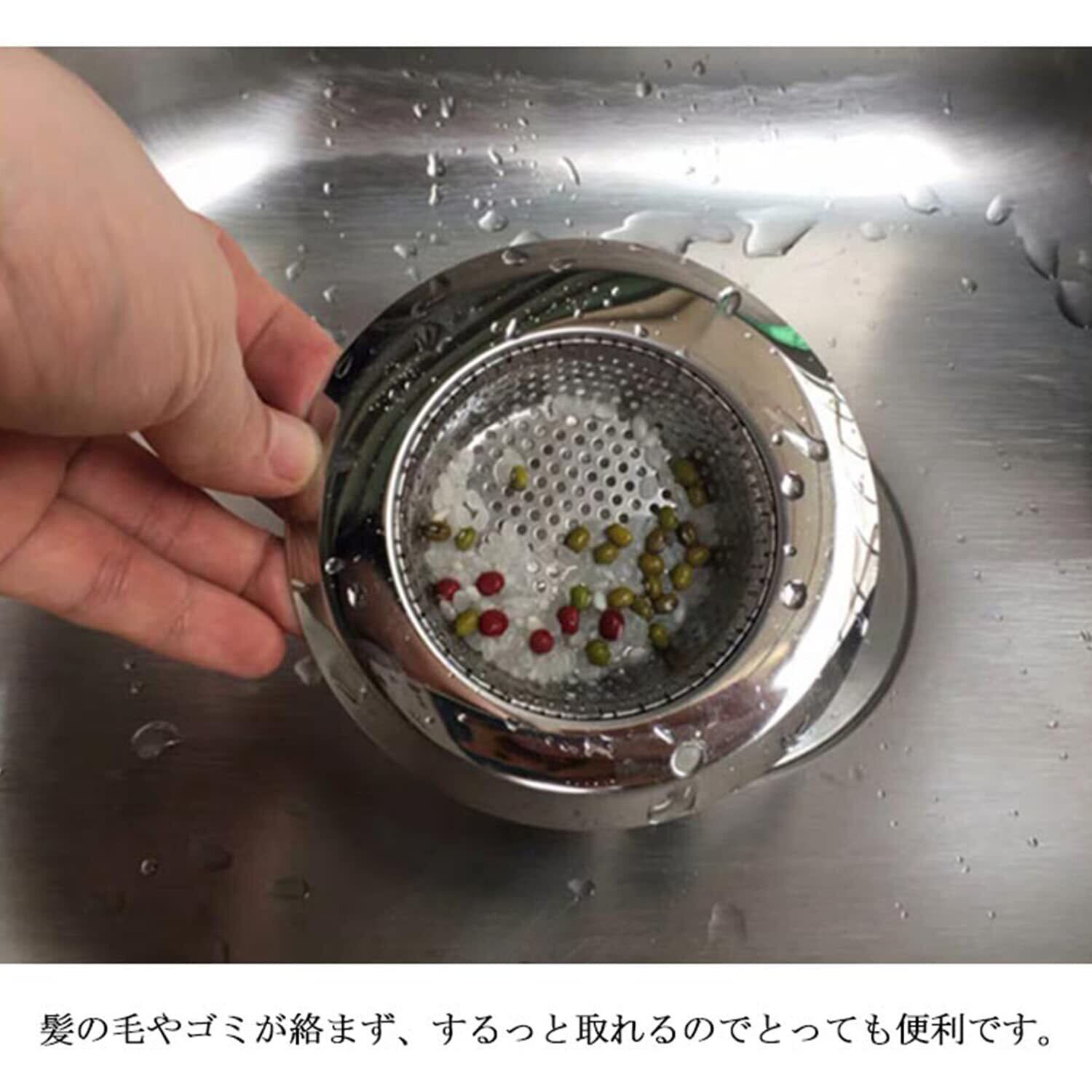 排水口にモノを落とすのを防ぎつつ、簡単に掃除できることができます。 ステンレス鋼を使用しているので、衛生的で錆びにくく丈夫。 底の丸い形状とパンチングメタルでゴミが集まる! 髪の毛やゴミが絡まず、するっと取れるのでとっても便利です。 選べる4サイズ展開、ほとんどの流し台の排水口にぴったり。 台所のシンクだけでなくユニットバスにも使えます。