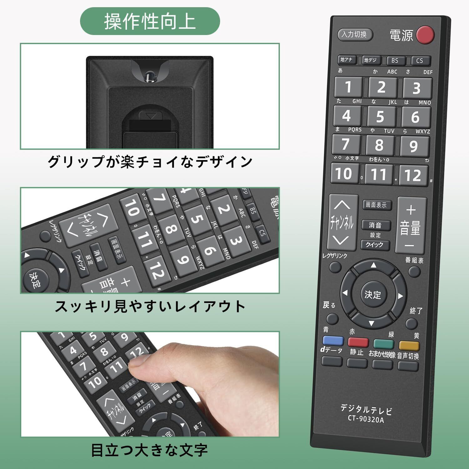 For 東芝テレビリモコン Regza リモコン レグザ液晶テレビ汎用リモコン CT-90320A 軽量化 太字ボタン