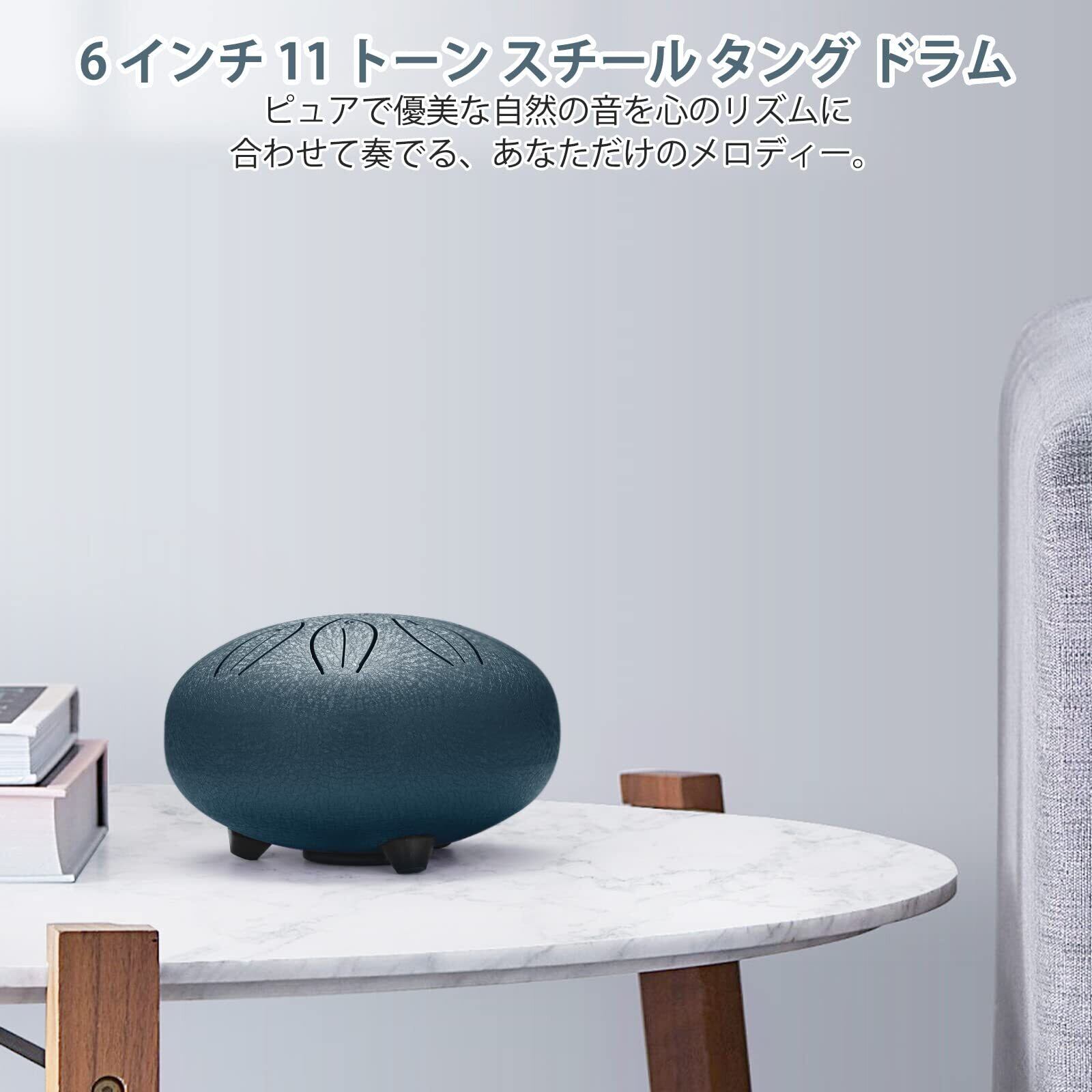 スリットドラム スチールタングドラム 11音 6インチ 打楽器 金属ドラム ヨガ/瞑想/癒し/祈り/治法/疲労療 楽譜付き 収納バッグ付き (ネイビーブルー)