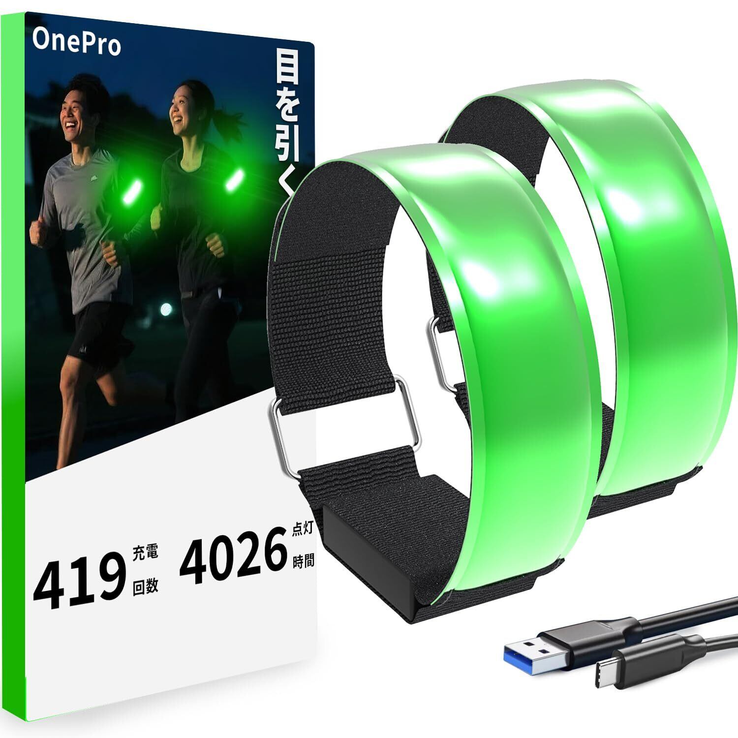 【特価商品】ランニングライト 充電式 長持ち 夜間スポーツ用 ジョギング ウォーキング LEDアームバント 安全確保 高輝度 ベルト 夜間の事故防止 回避 反射材 グマジックテープ 伸縮性あり 着用心地いい (グリーン2本セット)