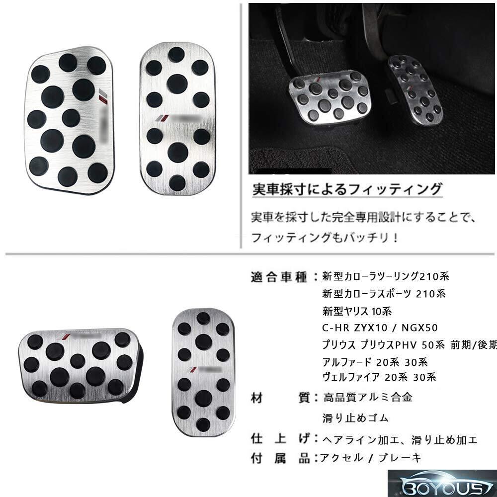 BOYOUS トヨタ 専用設計 高品質 アルミ ペダル 工具不要 PRIUS ブレーキ アクセル カバー 2点セット 適合多数 新型ノア ヴォクシー90系/アルファード ヴェルファイア 20系 30系/C-HR ZYX10 NGX50/ 新型カローラツーリング 新型カローラスポーツ 210系 /プリウス プリウスPHV 50系 前期/後期 /新型ヤリス ヤリスクロス 10系 防キズ 防汚れ 滑り止め 2点セット(シルバー)