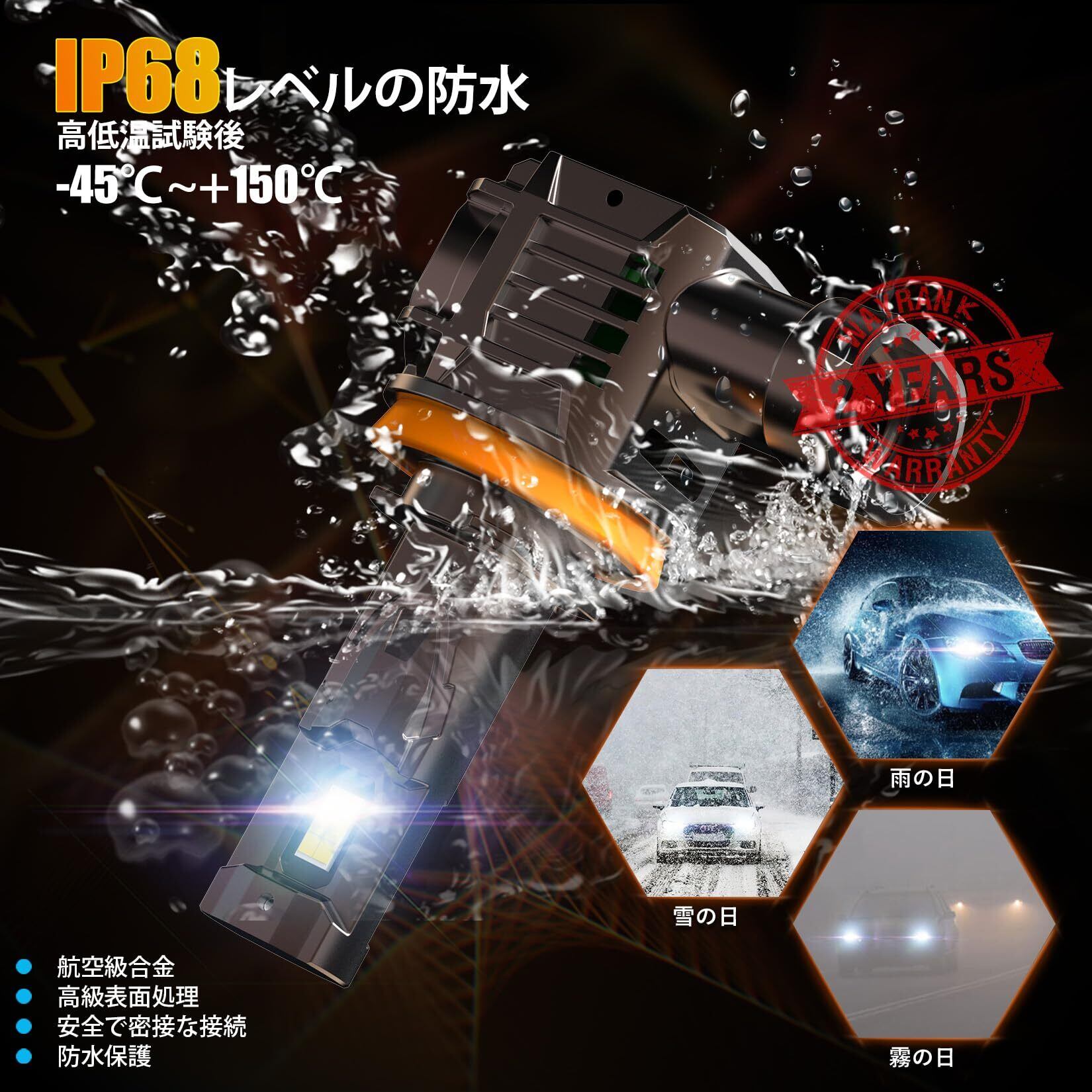 【四重放熱&IP68防水性能】4重放熱実現!四重放熱システムを採用し、銅基板+6063航空アルミ合金+冷却ファンのスーパー放熱率を実現!本体は航空級アルミニウム合金で作られていて、凹溝式設計最大限度放熱面積を増やして、放熱性能を大幅にUP!熱伝導と冷却効果が抜群!大雨、吹雪などの極端な条件下でも安全運転を確保できます。-40℃~+85℃動作環境でも0.1秒瞬間起動できます。IP68レベルの優れた防水性能で、短時間の浸水では全く影響は受けません。雨の日のドライブを安全、快適に!
