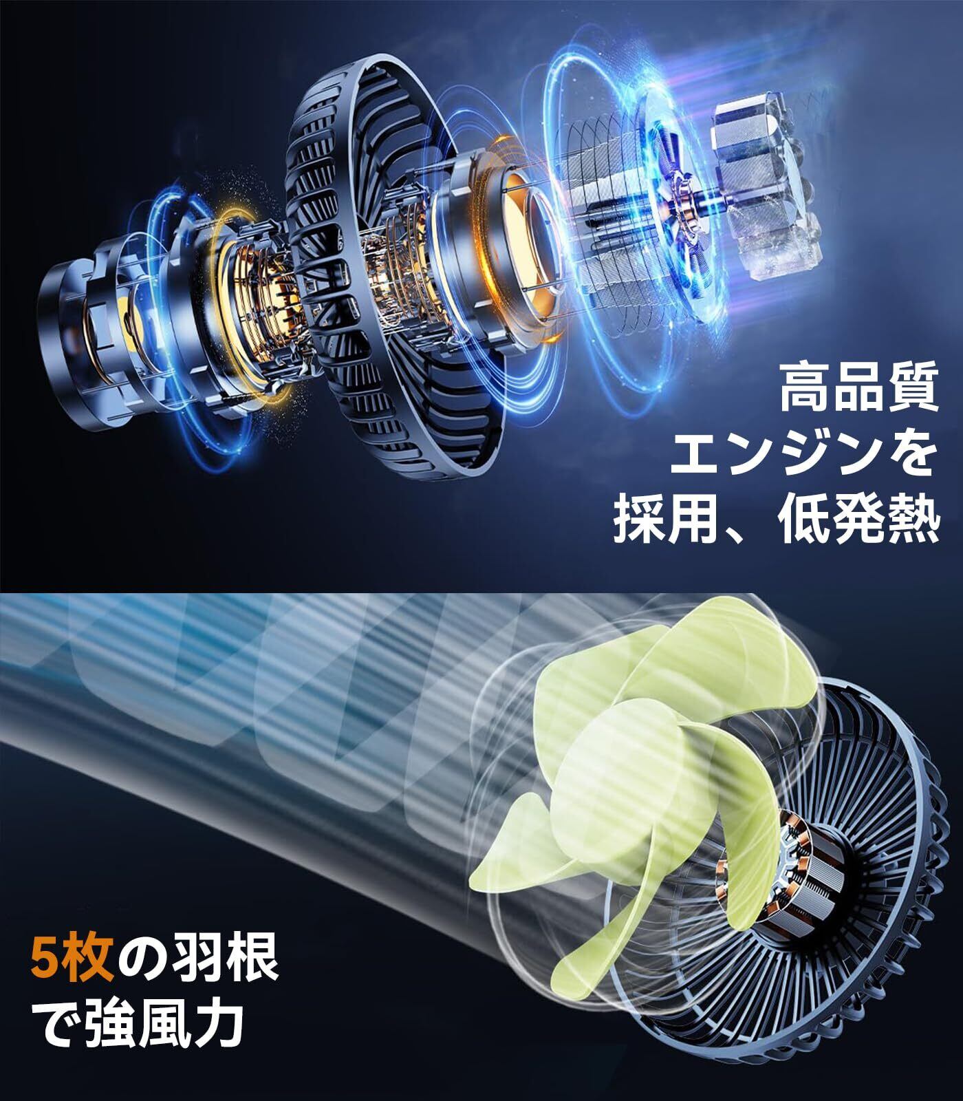 【低騒音で強風&高耐久性】弊社の車用扇風機は5枚羽根で強力な風量を確保しつつ、高品質なDCモーターを搭載しており、低騒音でありながら強力な風量を実現しています。ブラシレスモータを装置しており、通常のDCモータとくらべて、常に接触していて摩耗するブラシと整流子がないことから、耐久性が高いです。
