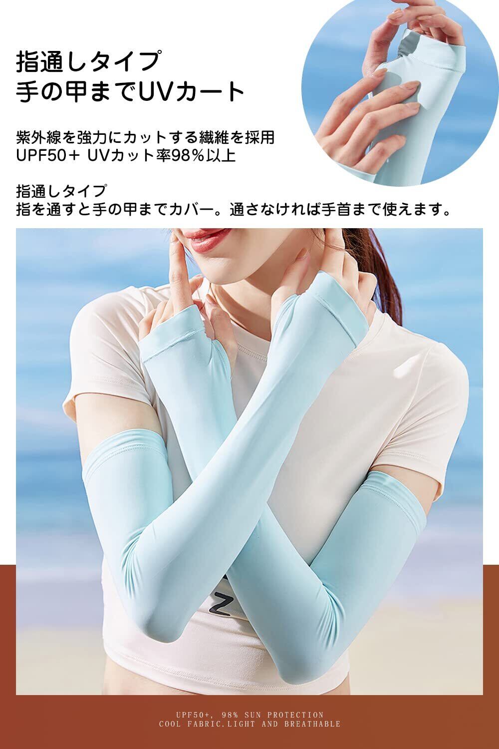 【UPF50+ &UVカット98%】一度使えば、実感できる。業界最高水準のUPF50+、紫外線カット率98%以上。付けるだけで、簡単にUVカットします。両腕の日焼け防止(UVカット98%以上の機能性生地使用)太陽の有害な損傷から腕を最大限に保護できる紫外線吸収剤で処理されます。