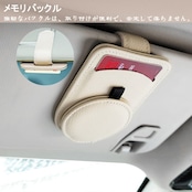 【特価商品】サムコス 車用収納 サングラスクリップ 車載メガネクリップ 眼鏡を守ります カード収納クリップ レザー調 取り付け簡単 (ベージュ)