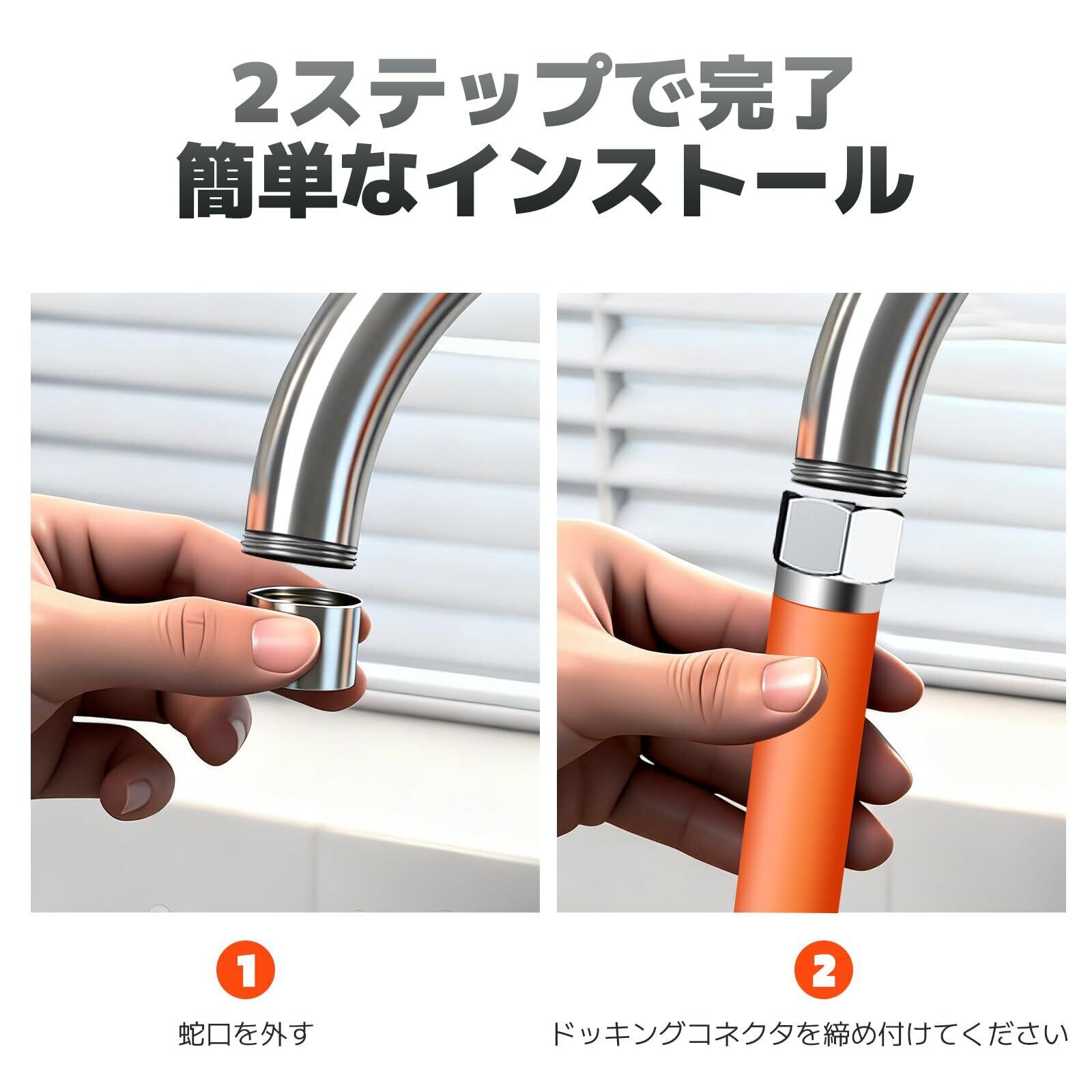 【取り付け簡単】工具なしで取り付け、取り外しが可能。必要な蛇口との互換性に注意してください。