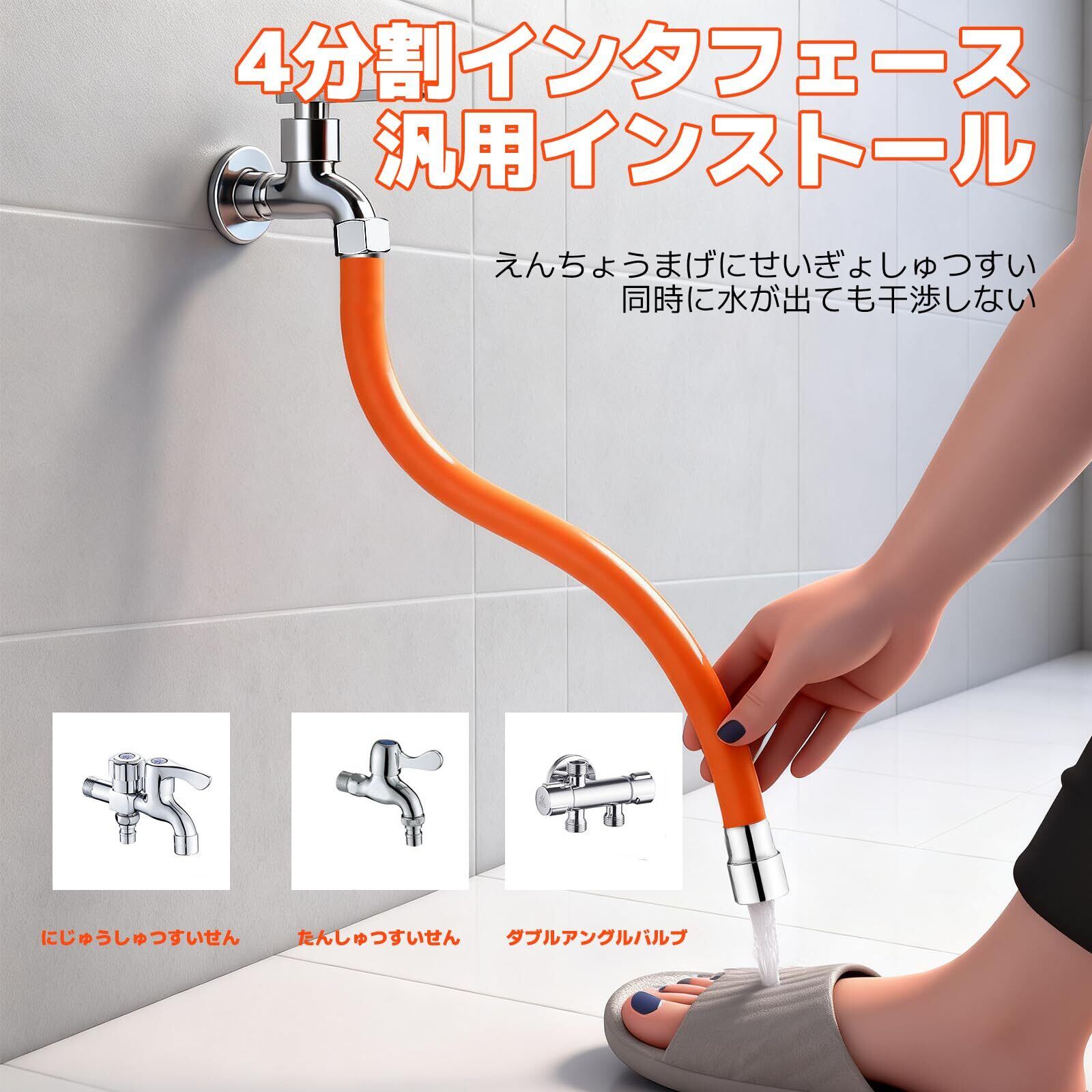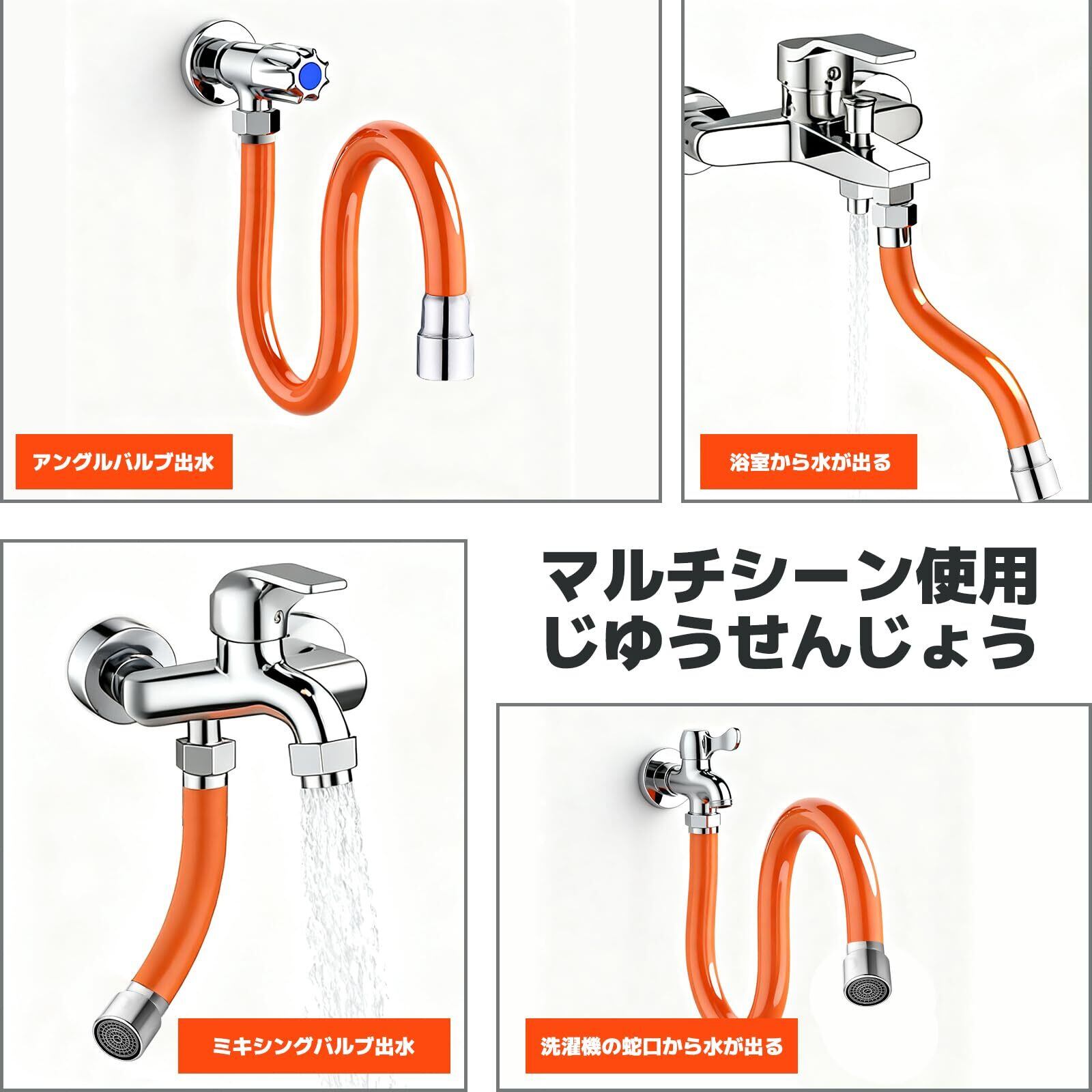 【蛇口延長ホース】自由に曲げ伸ばしできる、蛇口延長フレキシブルパイプです。国際汎用R 1/4インターフェイス(4 cm)、蛇口の大多数に適しています。管長は30cmと50cmで,必要長さに応じて選択できる。 接続アタッチメント付属しており。