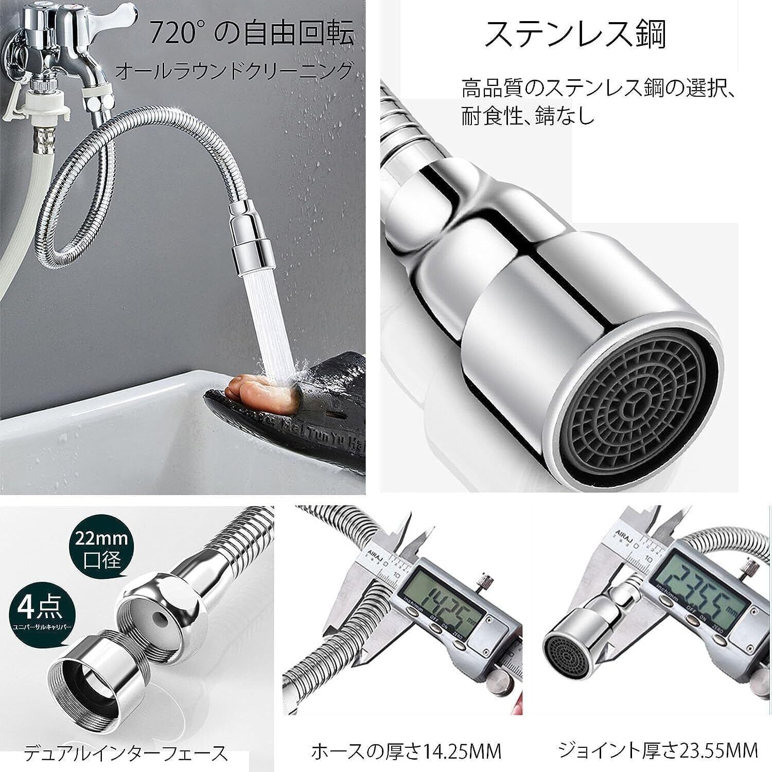 【適用範囲】家庭用のキッチン、浴室、洗面台、お手洗いの蛇口に適している。国際汎用インターフェイス(22mm)、蛇口の大多数に適しています。14㎝・16㎝・20㎝・30cm・40㎝・50㎝の長さを用意しております。使用箇所や使用目的に応じてお選びください。