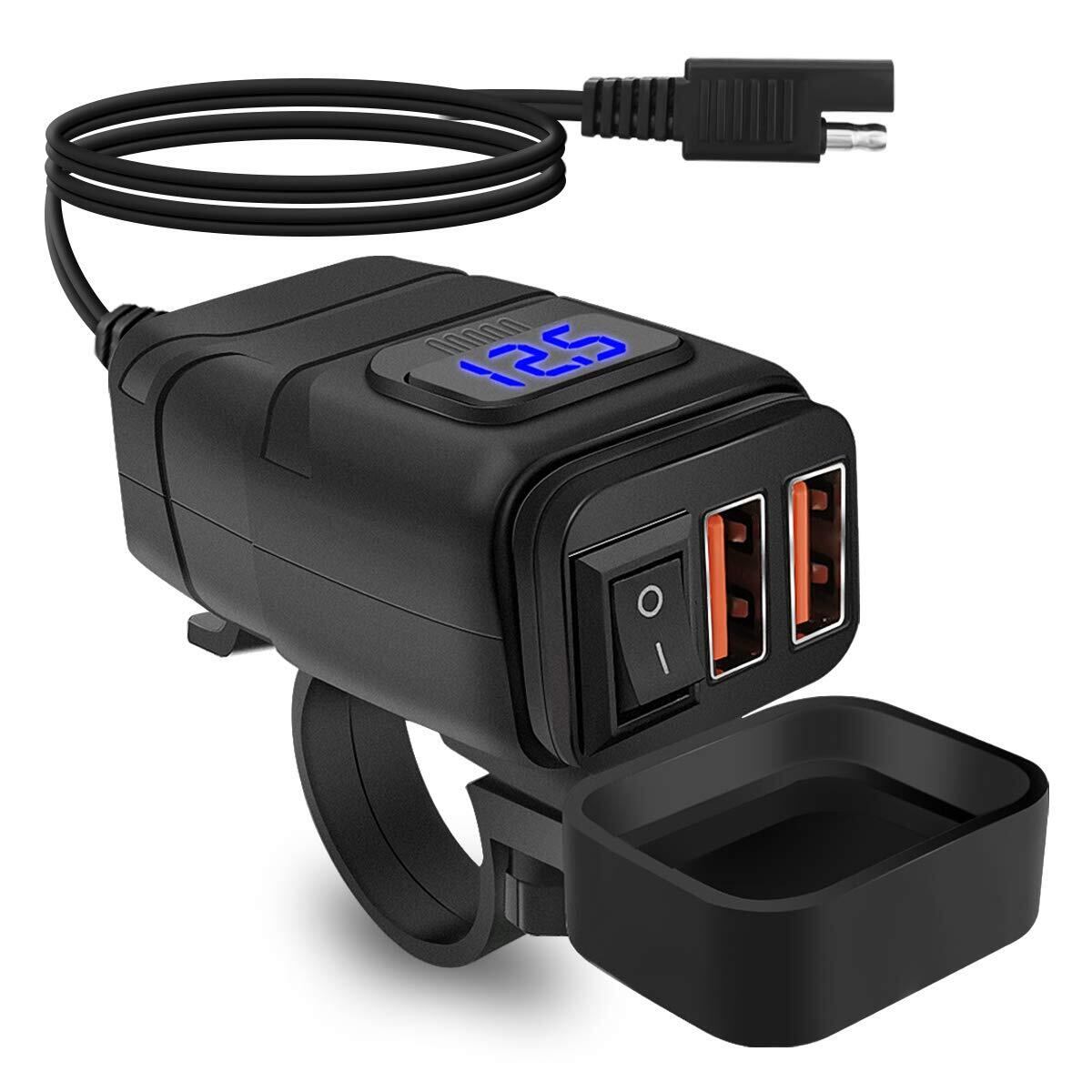 【2022最新】XBERSTAR バイク USB電源 USB充電器 車載充電器 防水 2ポートType-c電源 急速充電 電圧計付 安全ON/OFFスイッチ付 QC3.0過圧保護 2つのインストール方法 取付簡単 1つのSAEソケット+1メートルのダブルSAEソケットケーブル【対応携帯電話、タブレット、ナビゲーション、GPS】 (ブラック) | allstore3