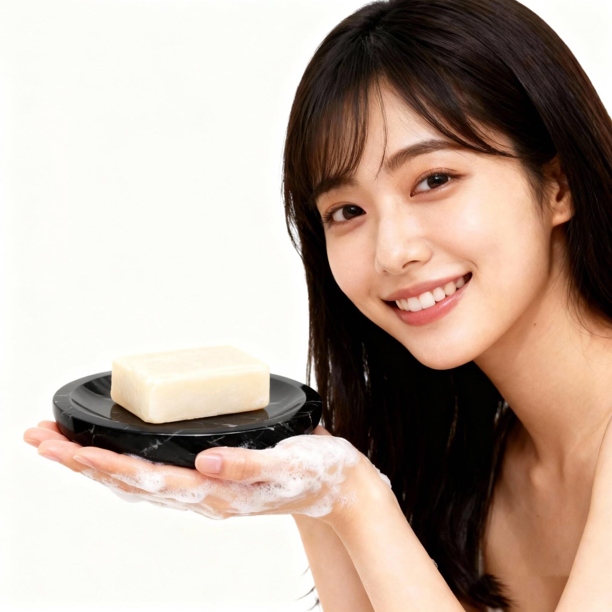 天然素材の作品:一つ一つが天然大理石で作られており、色や模様がそれぞれ異なるため、一点ものとなっています。不規則な木目により、黄褐色や白色の部分にばらつきが生じる場合がございますが、ソープディッシュはそれぞれが一点ものの天然芸術品です。サイズと重量はすべて手作業で計測しているため、若干の誤差が生じる場合がございます。
