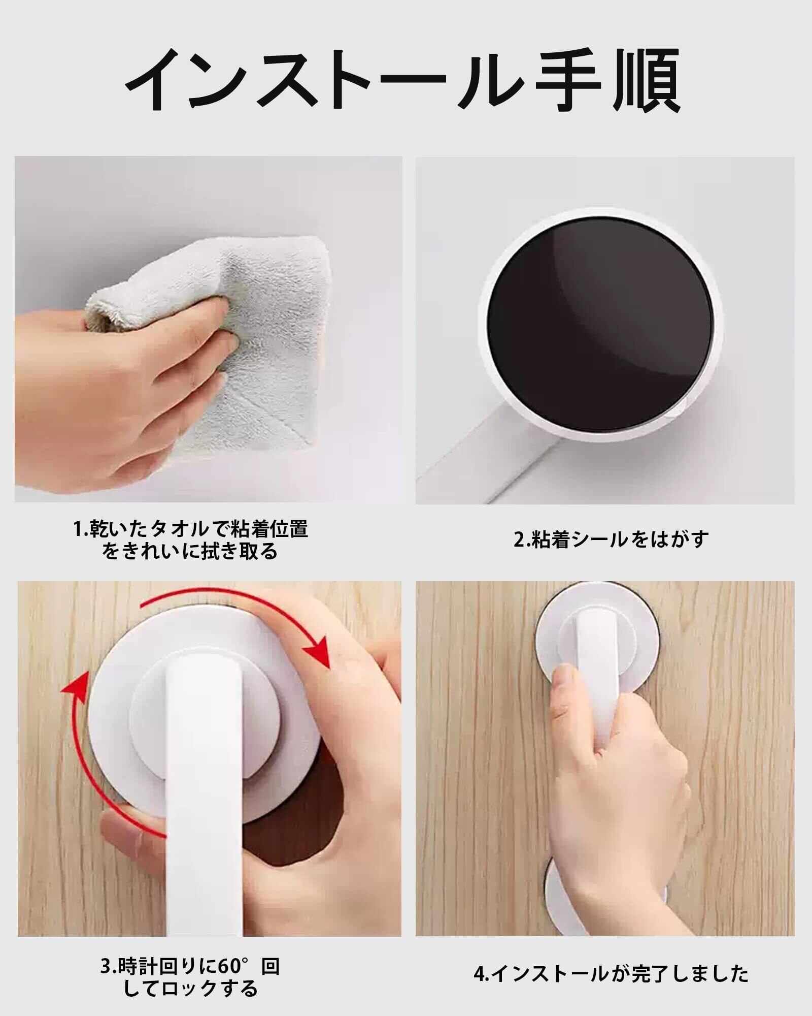 - 【多機能性】お風呂やトイレ、階段、窓ガラスなど、様々な場所に取り付け可能で、特に高齢者の方やお子様の安全を考慮しています。
