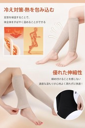 【伸縮自在!足首からふくらはぎまで完璧フィット】独自高弾性繊維を採用したリブ編み構造で、どんな足のラインにもぴったり密着。締め付け感・ずり落ち感がゼロの軽やか履き心地を実現。。冷えを防ぎながら、靴下やブーツの下でもスッキリとしたシルエットをキープ。冬場の寒さ対策やファッション性を両立した、どんなシーンにもマッチするアイテムです。