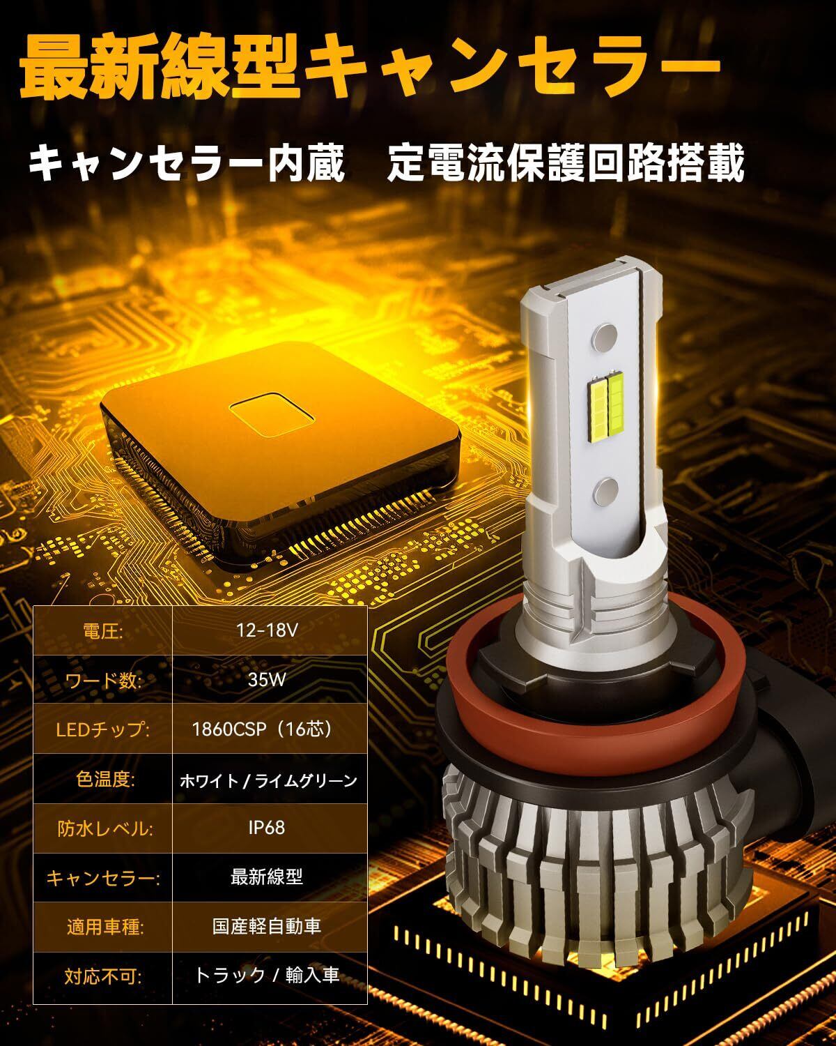 【 1年】製品情報:h8 led フォグランプ h8/h11/h16 バルブ/色:ライムグリーン/ホワイト(6500K)/ワット数:35W/セット数:2個/電圧:DC12-18V/寿命:約50000時間以上/セット内容:LED フォグランプ 2個/定電流保護回路搭載/適用車種:国産軽自動車/対応不可:トラック、輸入車/もし、初期不良等における不具合は、商品の交換、返品する事が対応できます。ご注文日より1年間の安心がございます。万が一何か不具合がありましたら、ご遠慮なく出品者にご連絡ください。