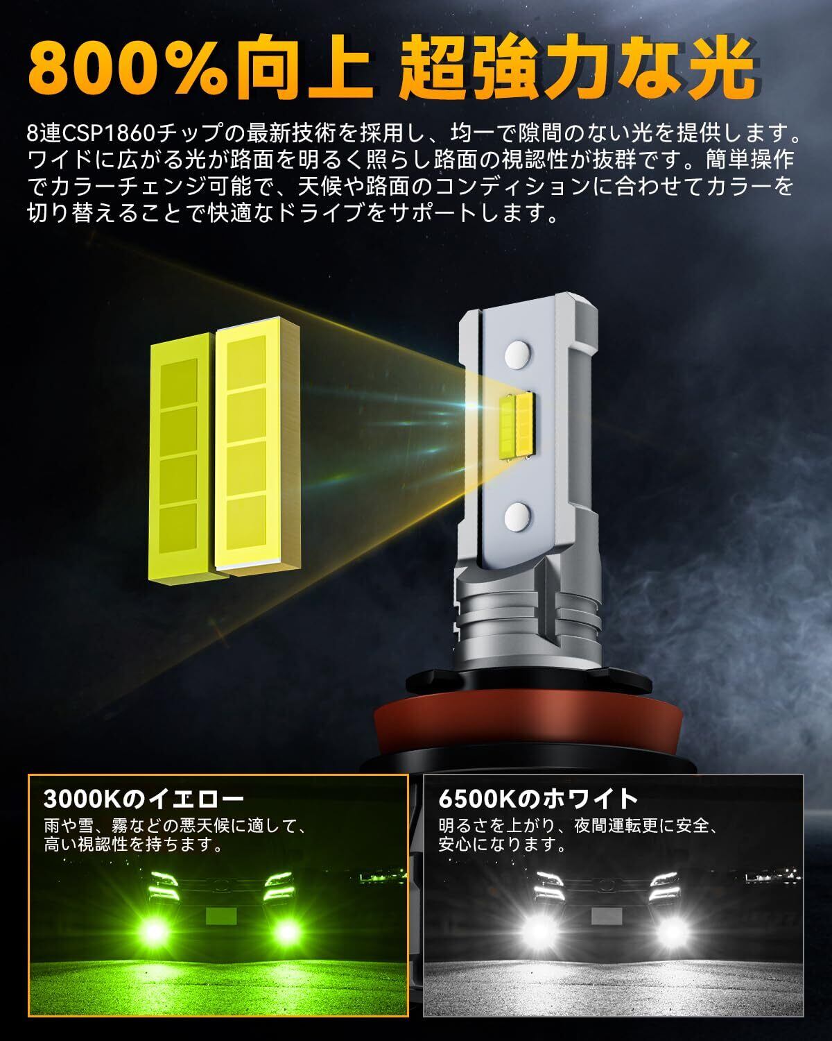 【人気商品】【角度調整可h8 led フォグ レモンイエロー】BORDAN LED フォグランプ レモンイエロー/ホワイト 2色切り替え h8 led フォグ レモンイエロー 爆光 h8/h11/h16 新車検対応 DC12V 1860CSPチップ ラジオノイズ対策 結露対策 日本語説明書付き キャンセラー内蔵 無極性 ファンレス 2個入り
