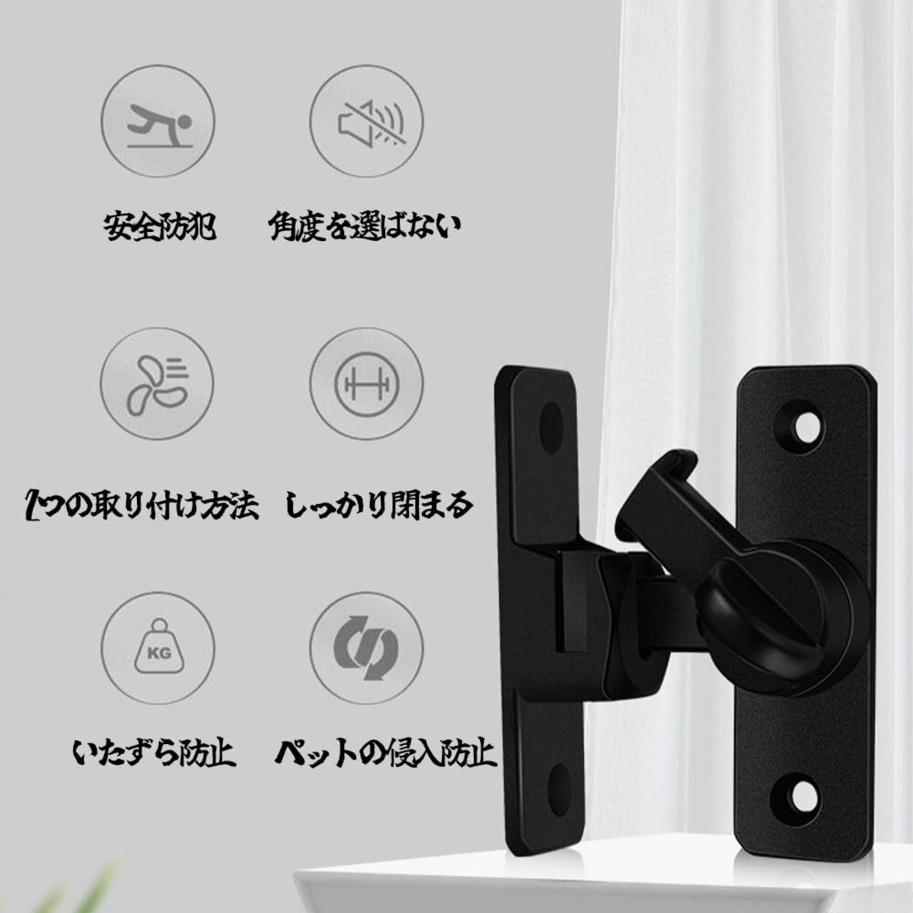 【数量限定】ドアロック 90度/180度 回転式 補助錠 後付け 引き戸 鍵 スライドドアロック 室内ドア 内鍵 扉ロック 防犯 寝室 部屋 蝶番金具 取付簡単 ネジ不要 ブラック 穴あけ不要 | allstore3