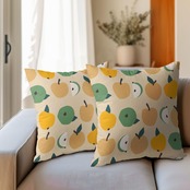 クッションカバー 果物が大好物 黄色と緑 フルーツ柄 鮮やか 果物 夏向け ポップ おしゃれ 緑 赤 45×45cm 北欧 クリスマス ギフト 誕生日 父の日 母の日 インテリア 展示 ホテル 店舗用 家庭用 2枚セット リネン風 枕カバー ソファー 車 オフィス 半分のリンゴ