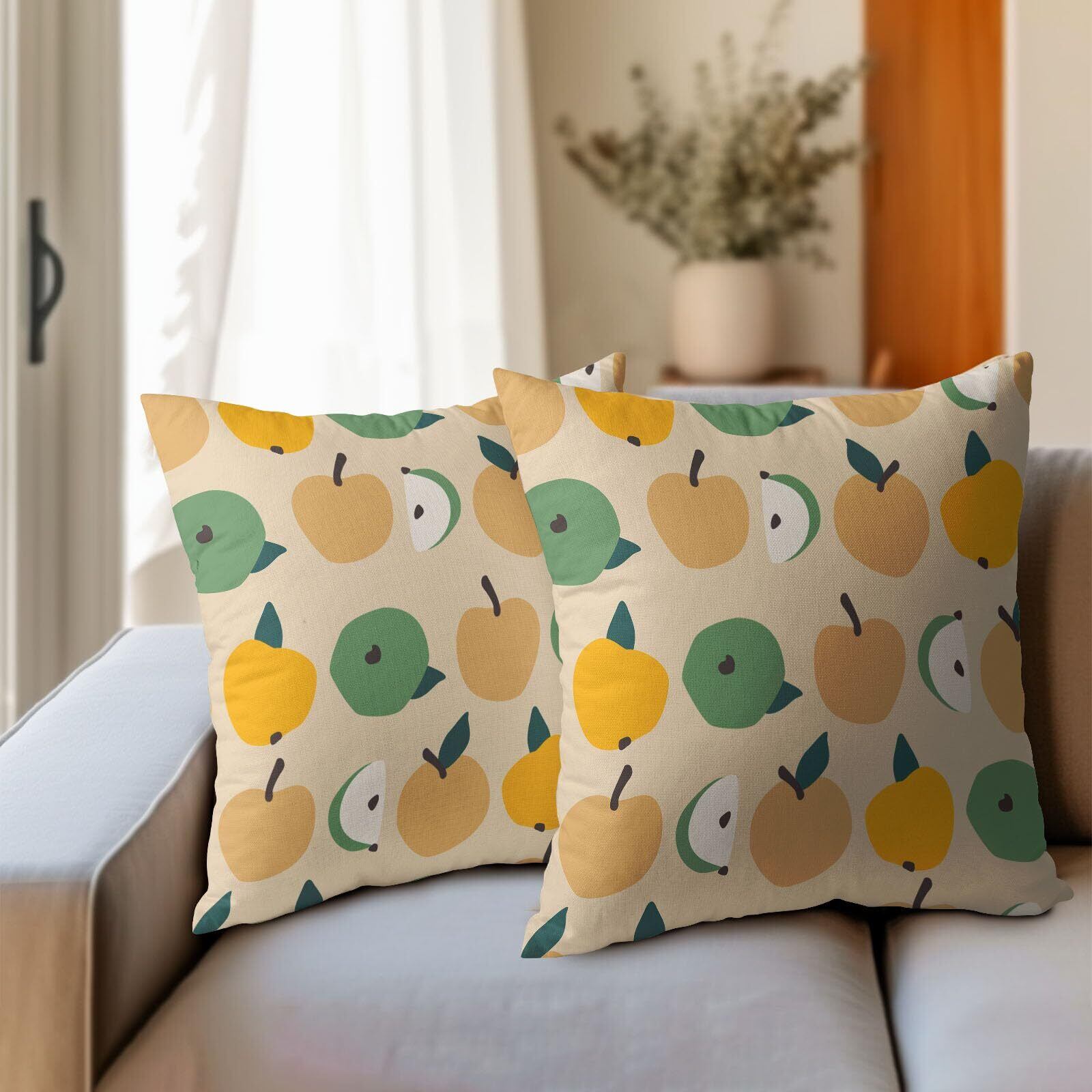 【人気商品】クッションカバー 果物が大好物 黄色と緑 フルーツ柄 鮮やか 果物 夏向け ポップ おしゃれ 緑 赤 45×45cm 北欧 クリスマス ギフト 誕生日 父の日 母の日 インテリア 展示 ホテル 店舗用 家庭用 2枚セット リネン風 枕カバー ソファー 車 オフィス 半分のリンゴ | allstore3