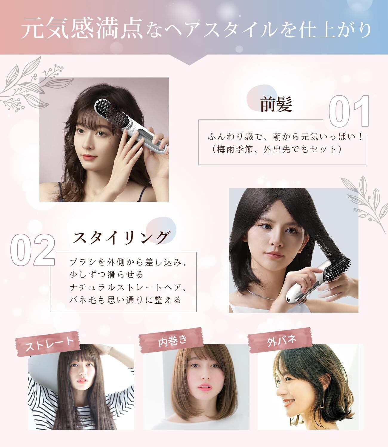 商品特長 ストレート矯正, マイナスイオン付き, モバイルバッテリーになる, 火傷防止