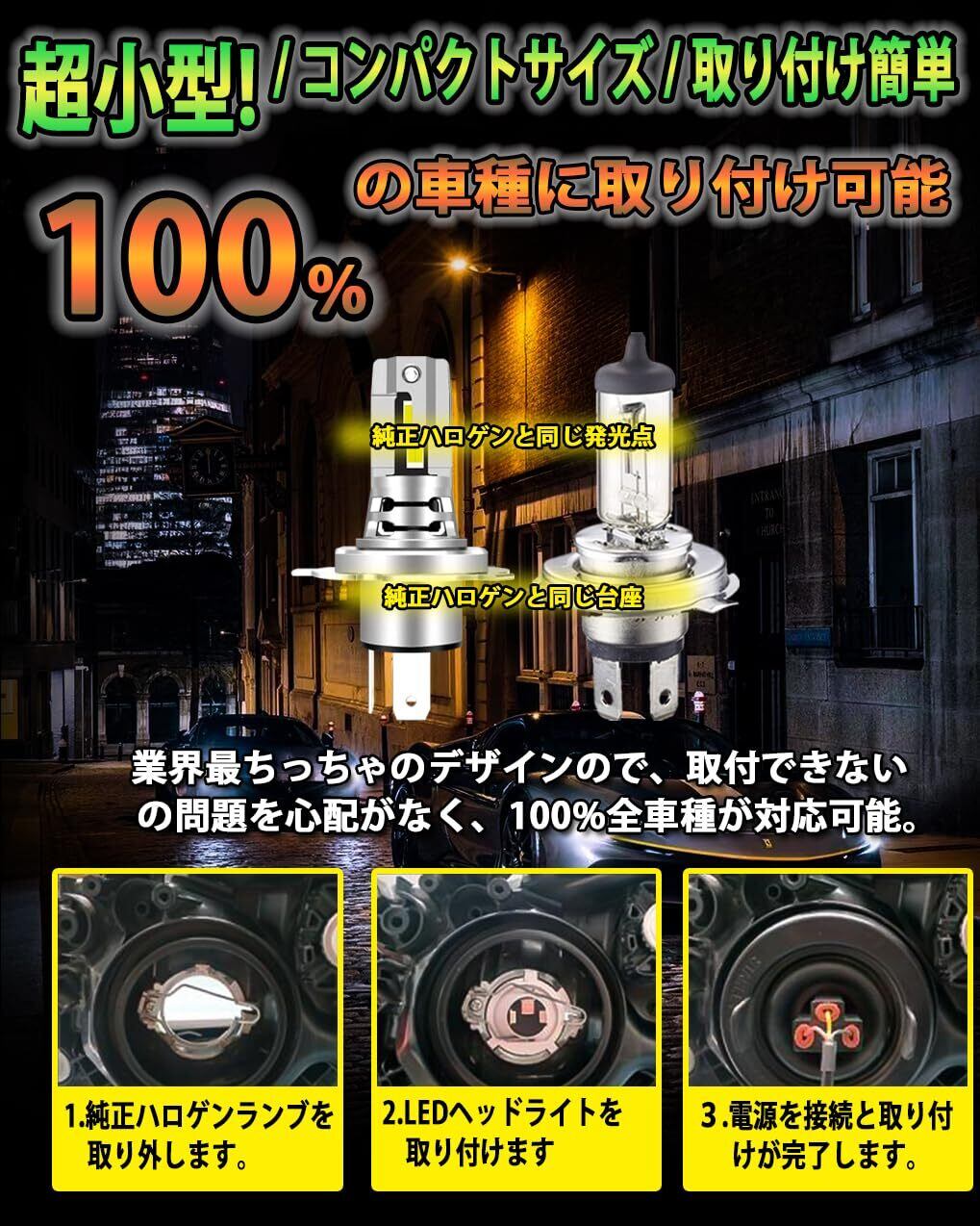 「業界最ちっちゃ!爆光 H4 Hi/Lo切替LEDヘッドライト」を手に入れて、明るく安全な夜の運転を体験してください!あなたの愛車をスタイリッシュに照らします!