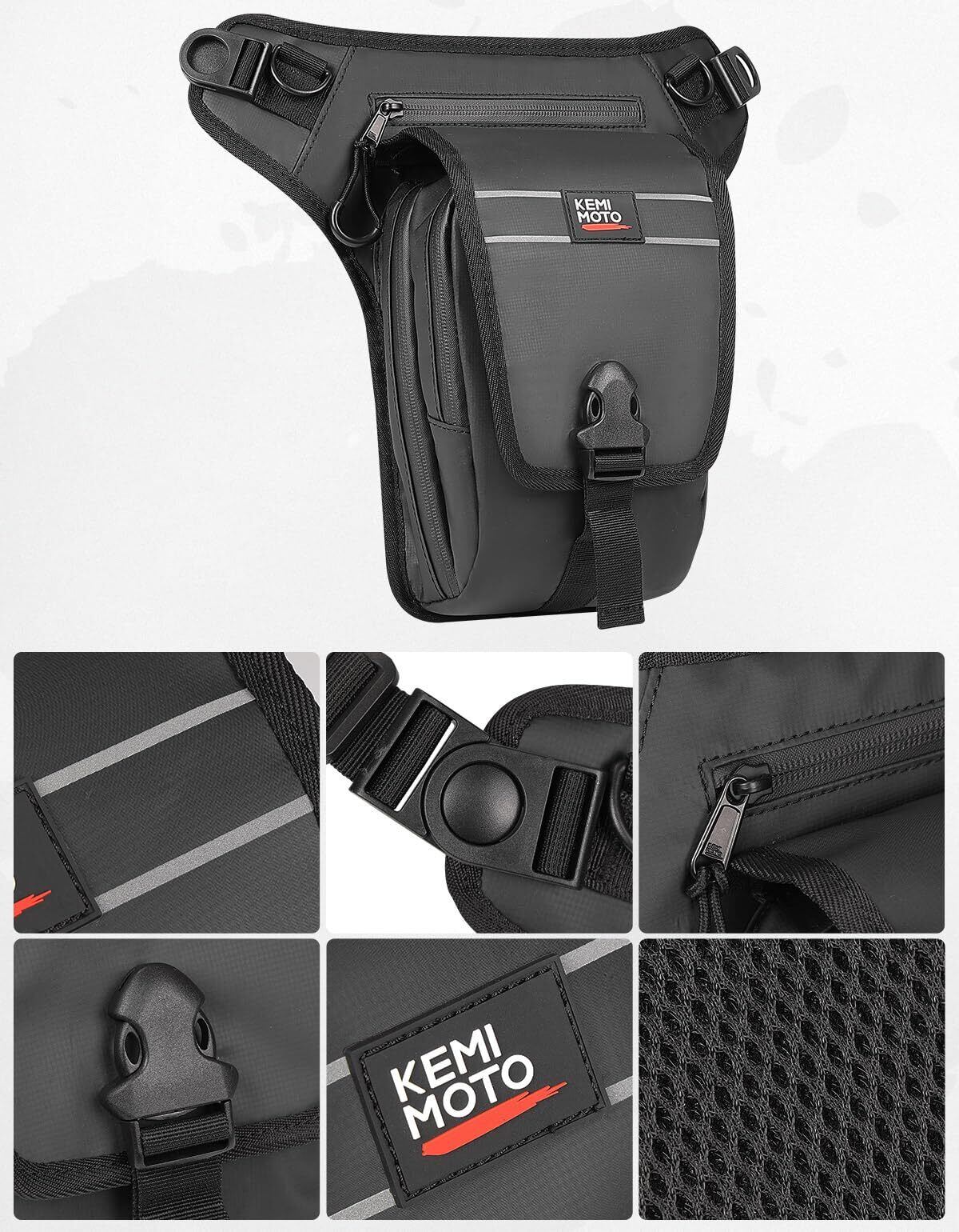 KEMIMOTO バイク レッグバッグ 2L容量 レッグポーチ ヒップバッグ 3室構造 仕分ポケット内蔵 バイク ウエストバッグ 多機能ウェストポーチ 撥水加工 調節可能ベルト アウトドア/通勤用