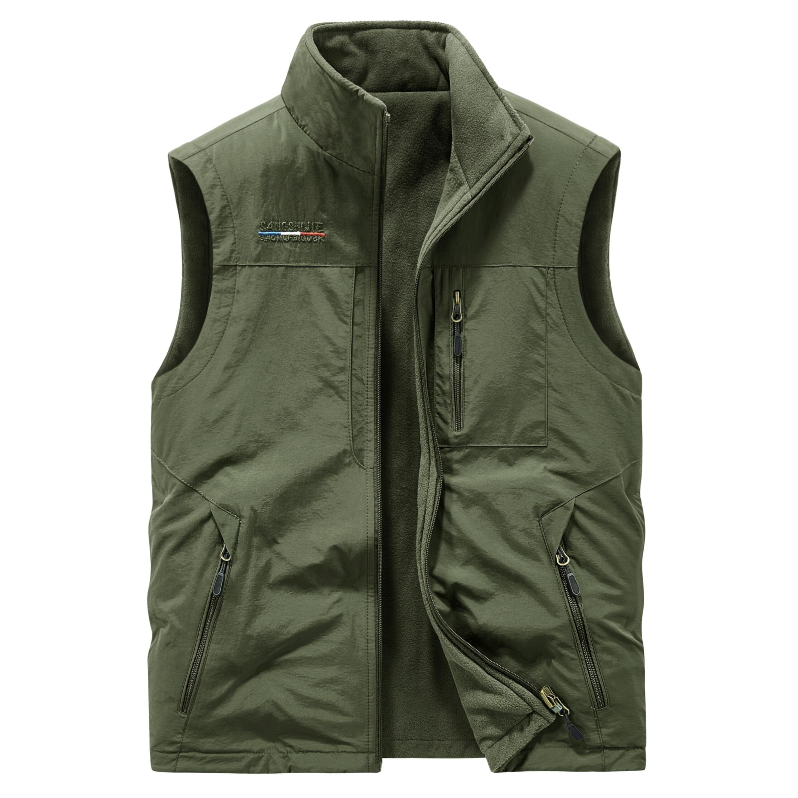 [Kayiyasu] ベスト メンズ フリースベスト リバーシブル 両面着用 アウトドアベスト 防寒 暖かい 裹起毛 フィッシングベスト 多ポケット 多機能 M-5XL 大きいサイズ 撥水 作業用 釣り用 撮影用 キャンプ 登山 秋 冬