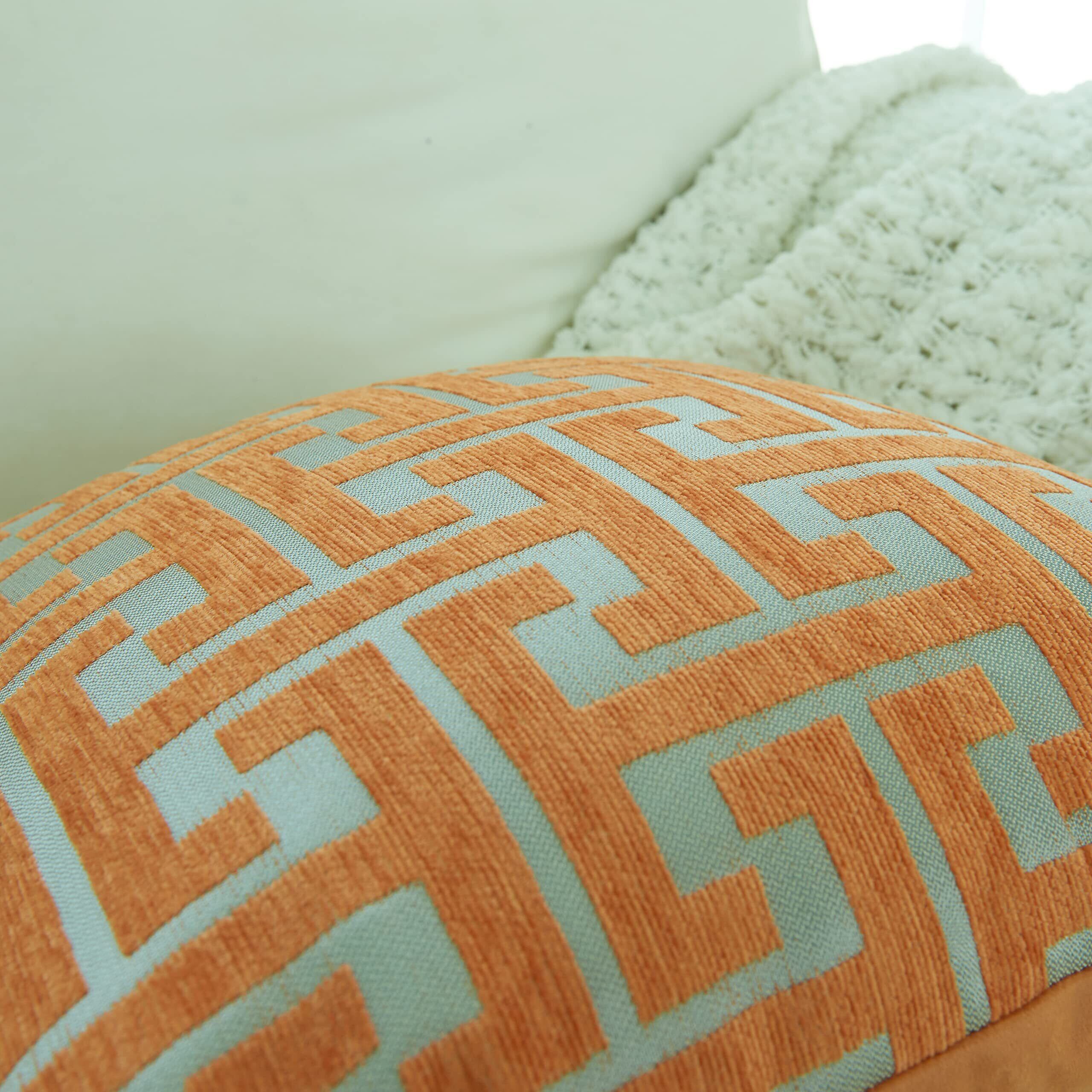 クッションカバー シェニール生地 幾何学模様 柄 おしゃれ 柔らかい北欧 可愛い ピロケース 車 椅子 インテリア飾り 2枚セット (オレンジ, 45x45)