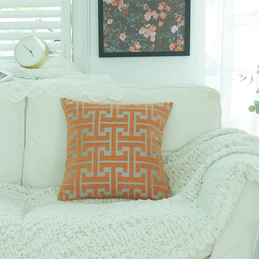 【特価商品】クッションカバー シェニール生地 幾何学模様 柄 おしゃれ 柔らかい北欧 可愛い ピロケース 車 椅子 インテリア飾り 2枚セット (オレンジ, 45x45)