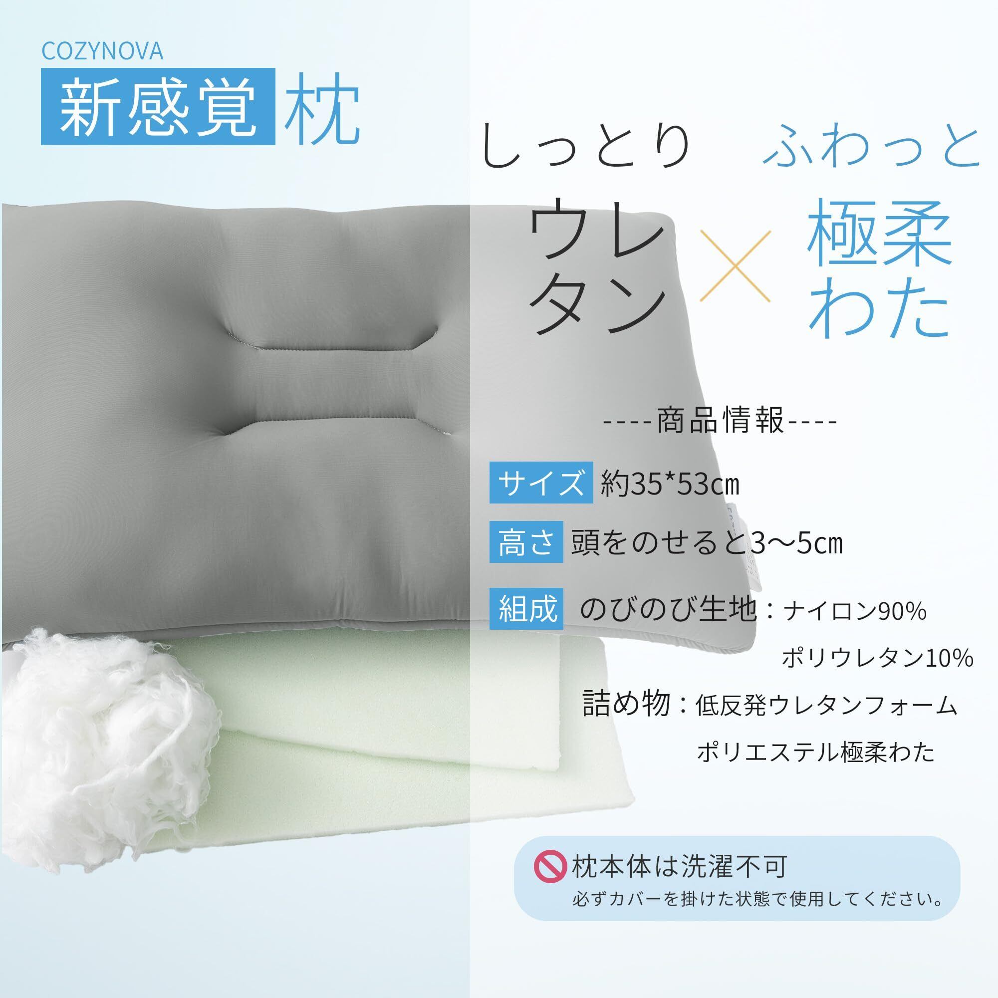 【新着商品】枕 首が痛くならない まくら 新感覚枕 もちもち 低め 睡眠 低反発枕 よく 眠れる 安眠枕 横向き寝 快眠枕 pillow 【極柔わた&低反発ウレタンフォーム】 35 53 グレー